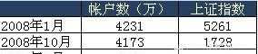 附背景资料:大盘2008年从5600跌到1700只跑了1.4%的持仓帐户。而2009年1月底大盘回到1990点,持仓帐户经过3个月反弹竟然少了10.5%。