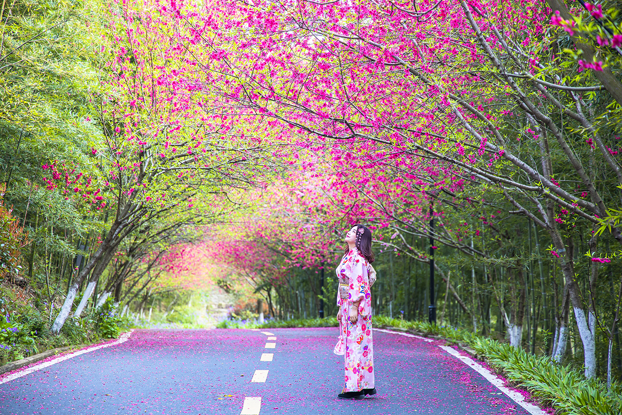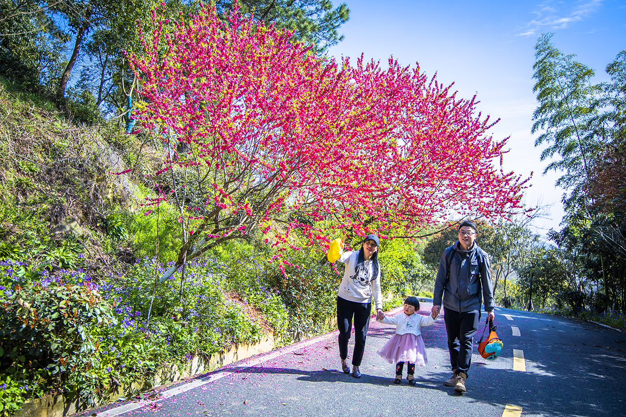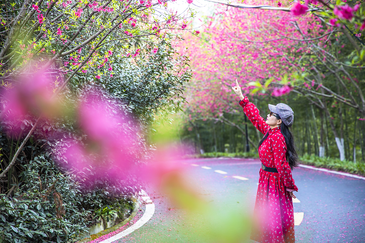 人们常把桃花运来描述爱情的来临,玫红色的桃花寓意着美好的爱情,而靓丽好看的“贵妃南极红”,其实是桃花里的一种,是桃花里的极品。春天来时,花乡茶谷里,满山满园的春茶泛着新绿,漫步在贵妃南极红大道之上,轻盈的风带着春天的清香,偶尔的带着一丝丝花香甜甜的味道,感受这一刻恍若置身于世外桃源的自然美好。