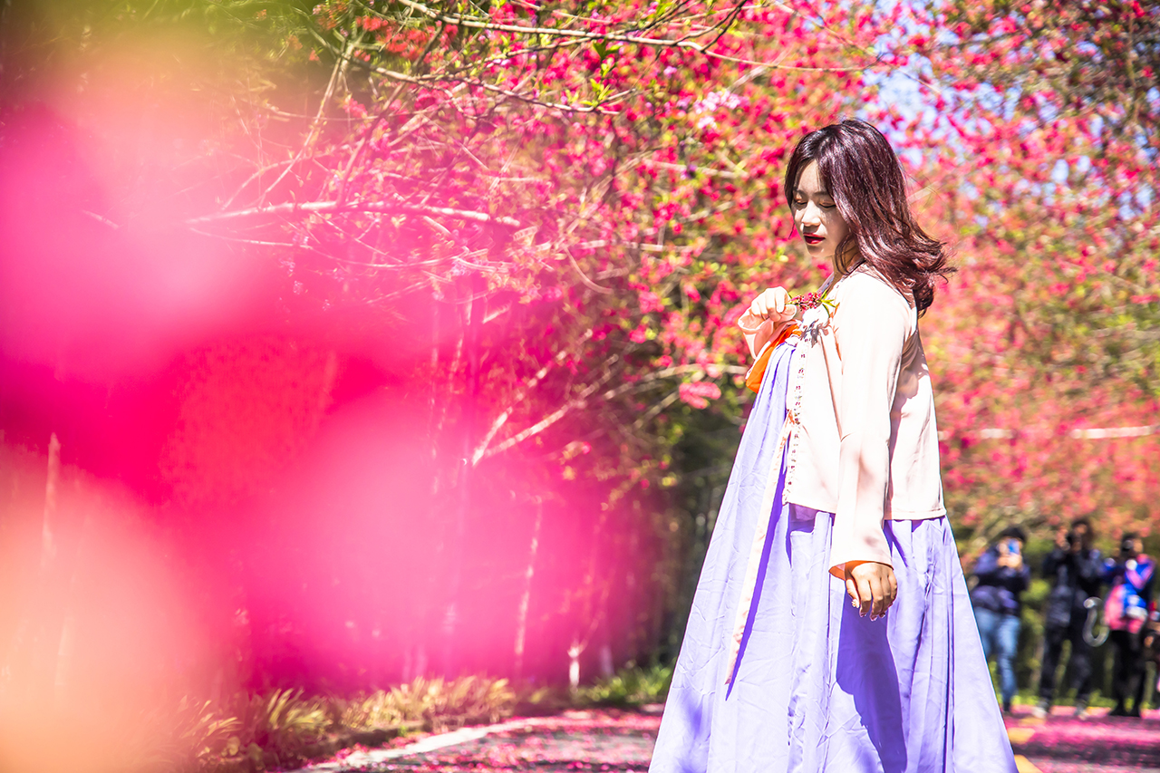 转一个圈来到山间的石头小路,这里的春色依然繁盛,一眼望去,一路都是繁花相送。换上一袭华福,温柔的粉嫩的心情格外美好,春天里除了浪漫樱花,浪漫紫色的二月兰,娇艳欲滴的南极红,等丰富的花朵品种,非常适合身着靓丽的衣裙来此拍照。在这里处处是美景,处处有春光,各种颜色的花朵娇艳欲滴,随手一拍,都是大片。