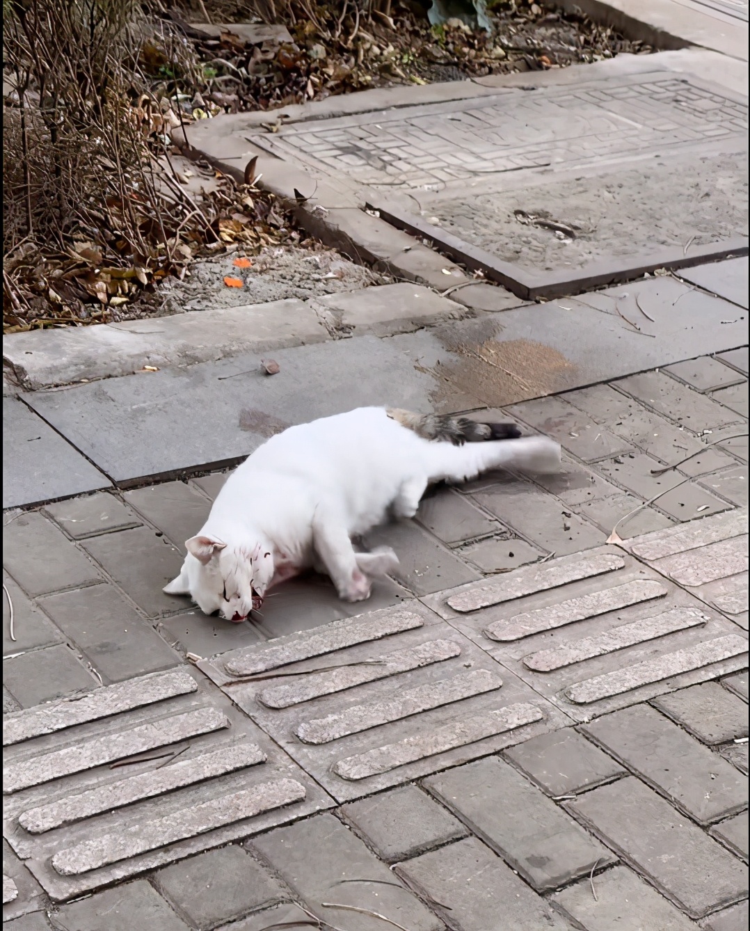 今天骑着电车上班路上在路边看到了一直非常痛苦的猫咪,努力地挣扎着,看上去除了脸部,其他部位没有看到血迹,看着时间过不了多久上班的时间就到了,看到它如此痛苦,只能将它抱进宠物医院了!半天的薪资没了!