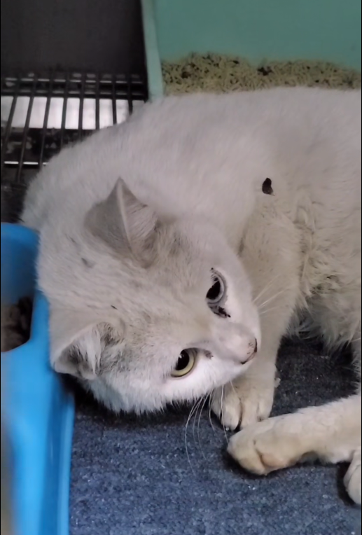 经过了3天的细心照顾,猫咪的病情终于有了一点点好转,最起码猫咪不那么痛苦的挣扎了,只是喂食需要以流食和软食为主了,看着猫咪安静的趴着,心里还是真高兴!