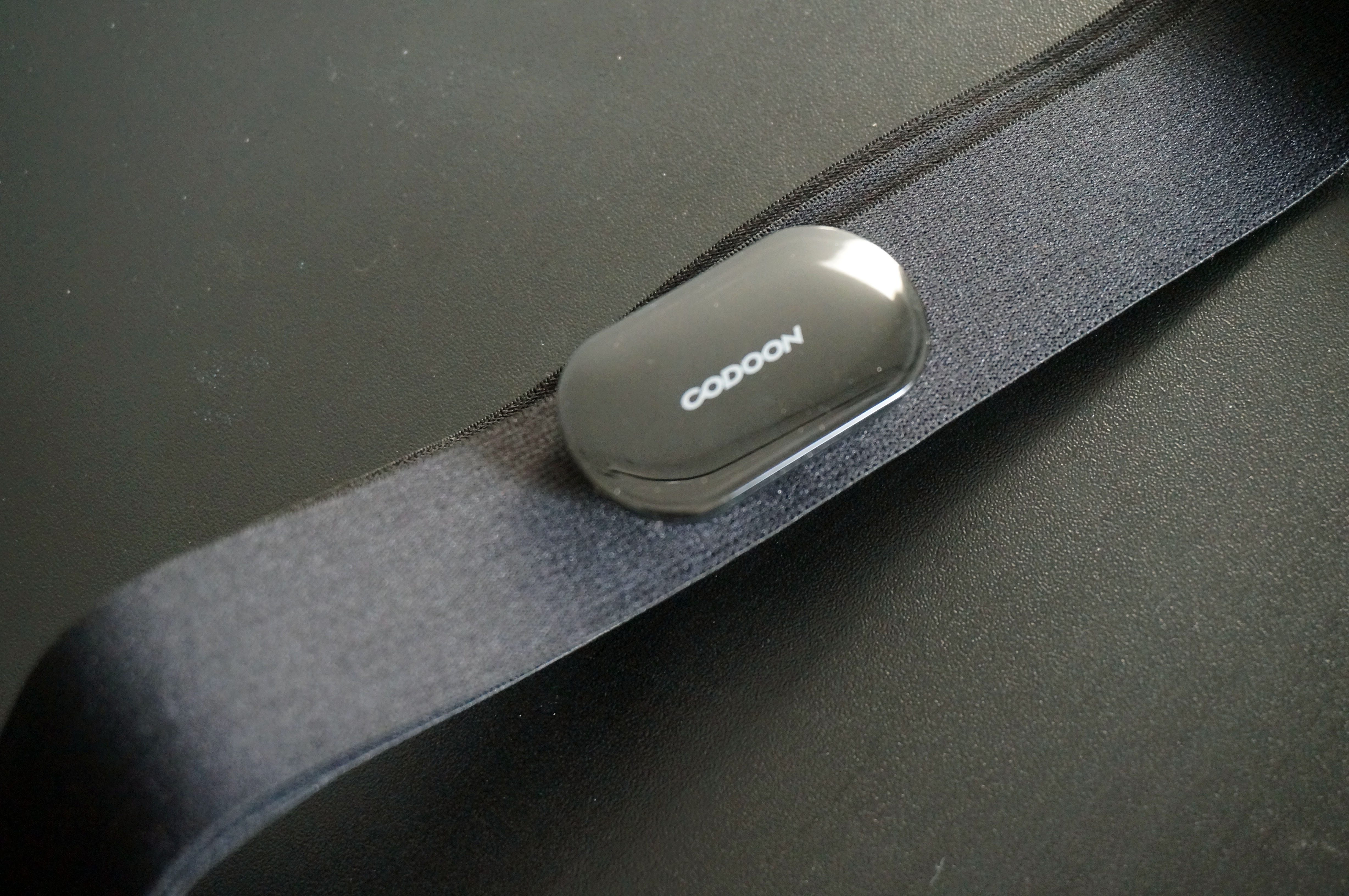 正是因为心率带的特殊优势和更实用的指导价值,我在几经选择以后入手了咕咚的智能心率带。从正面来看,咕咚智能心率带的设计非常动感,上方中央是心率带的渲染图,周围有一些环绕扩散的波段,下方则是咕咚品牌logo和产品品名。
