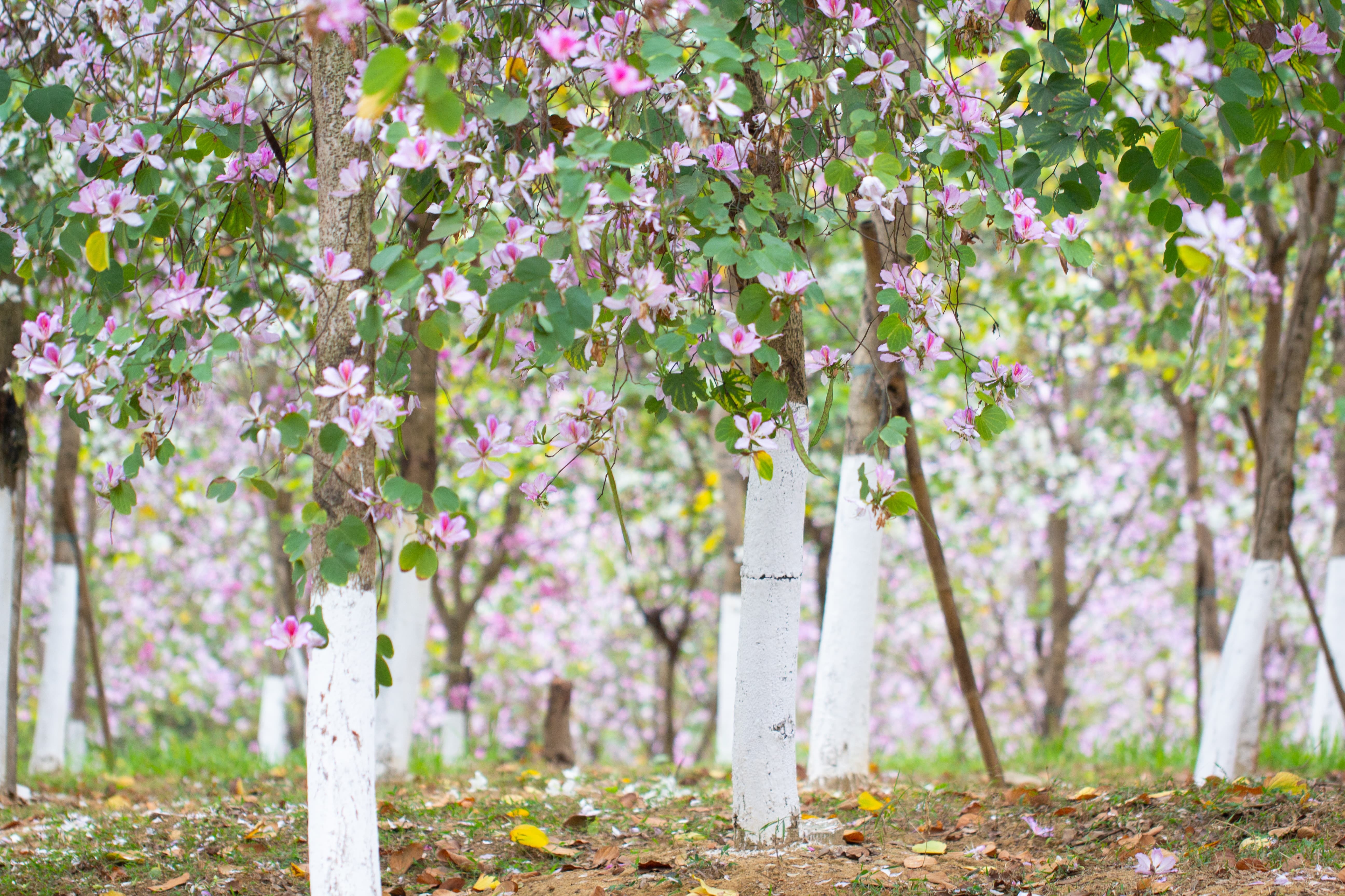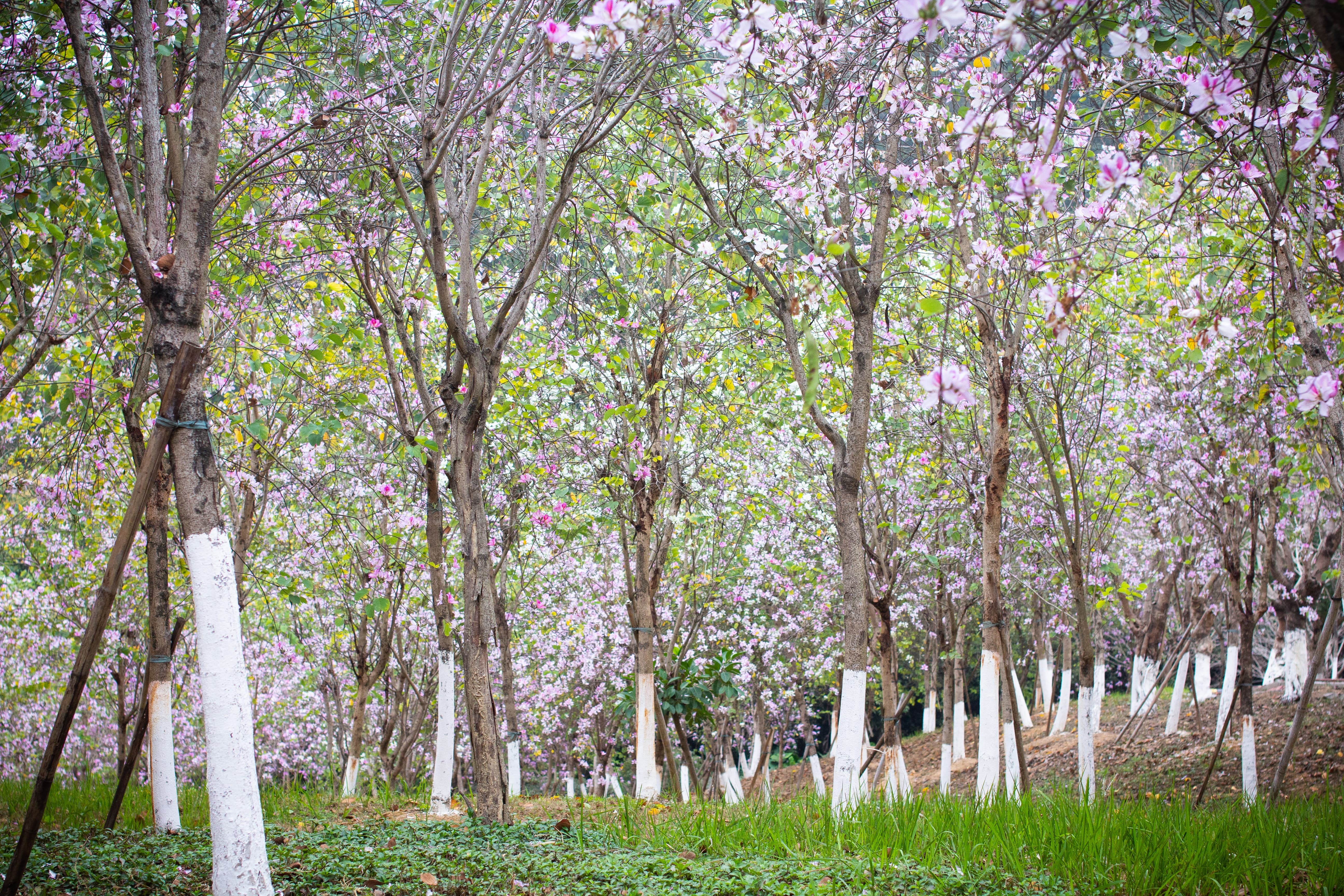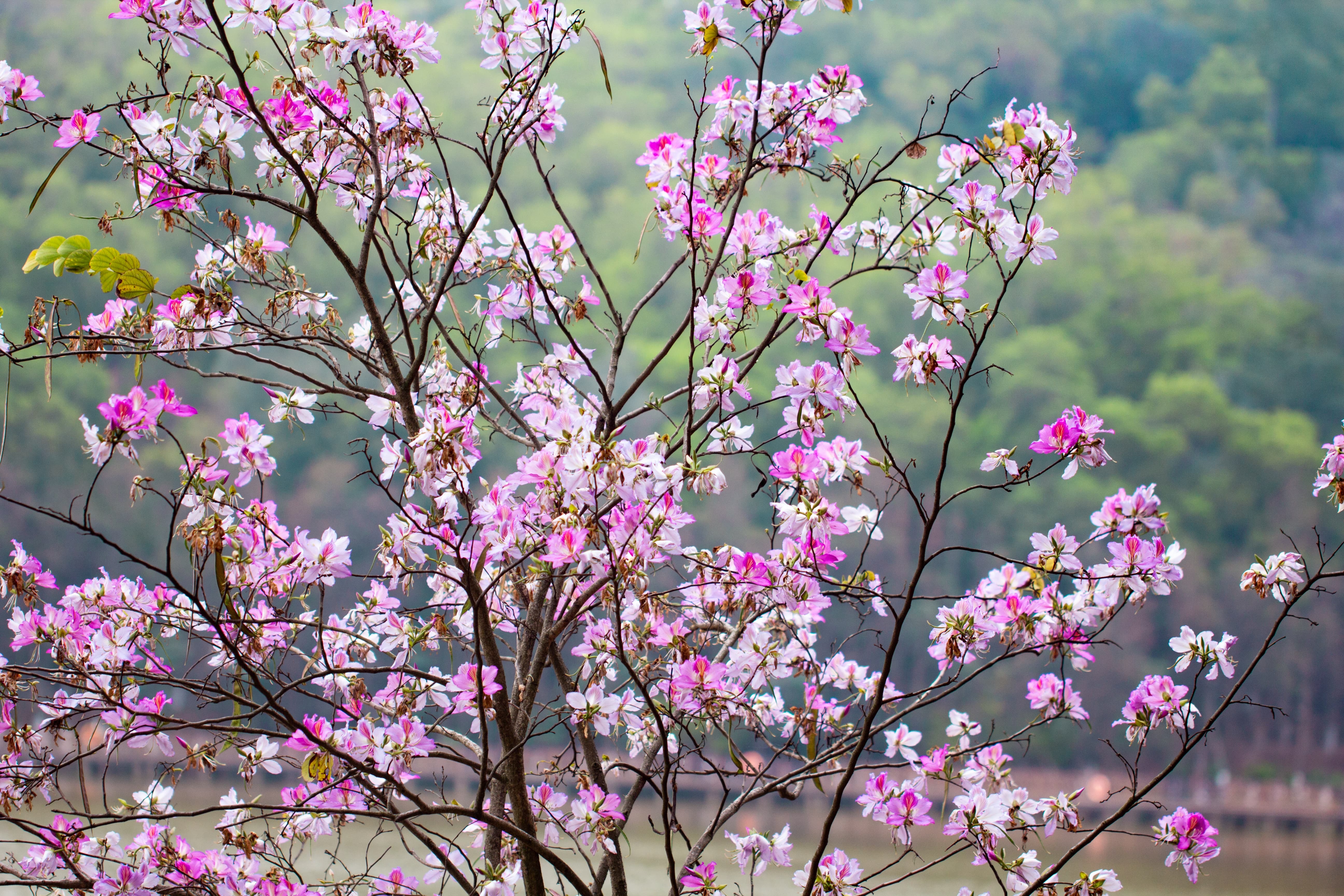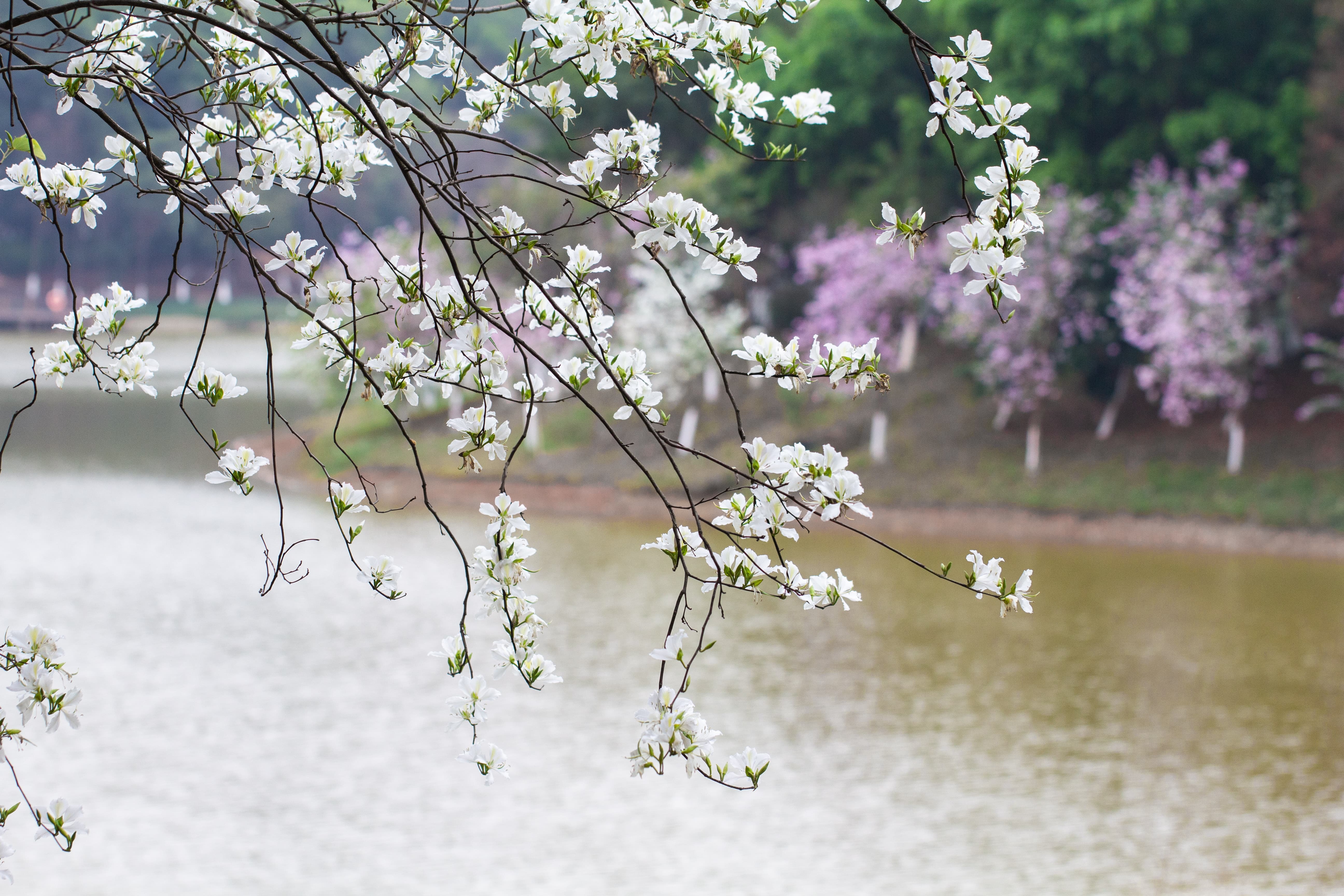 紫荆花大概是广州最常见的花了,可以与随处可见的三角梅一较高下,道路旁、池塘边、公园里、山腰湖畔,都是紫荆花的身影,远远望见一片粉红色或纯白色,漾开一片氤氲,非常耀眼。