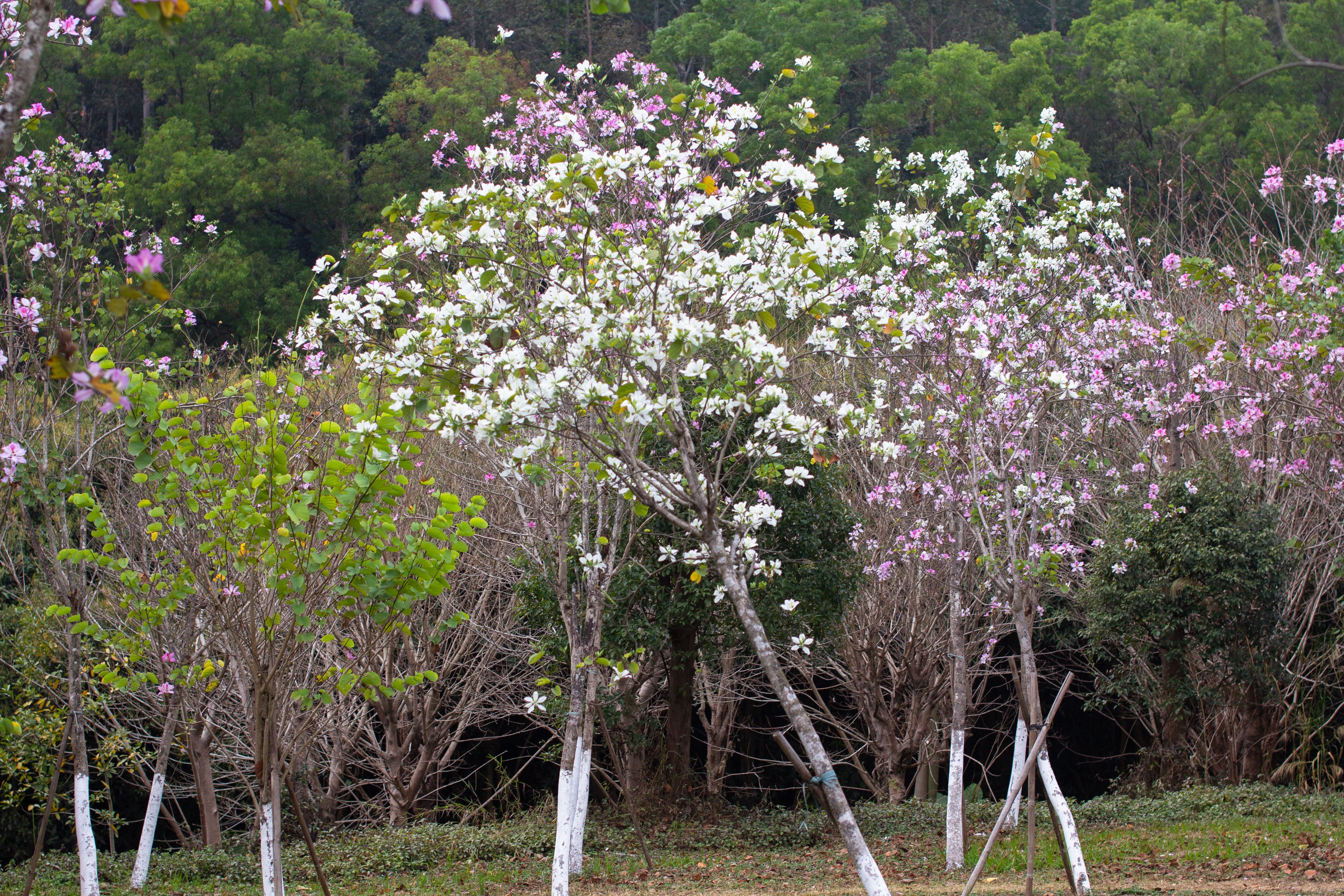 大夫山有两处成规模的紫荆花园,总面积有三四亩的样子,大部分为宫粉紫荆,也有一些白花紫荆夹杂其中,花色鲜艳,盖过了附近木棉花的风头。