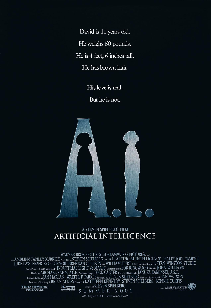 《人工智能》(2001)这是斯皮尔伯格电影海报中的经典标志之一。影片在思考这样一个问题:一个有知觉的生物是否可以被设计成比它的创造者拥有更多的人性。