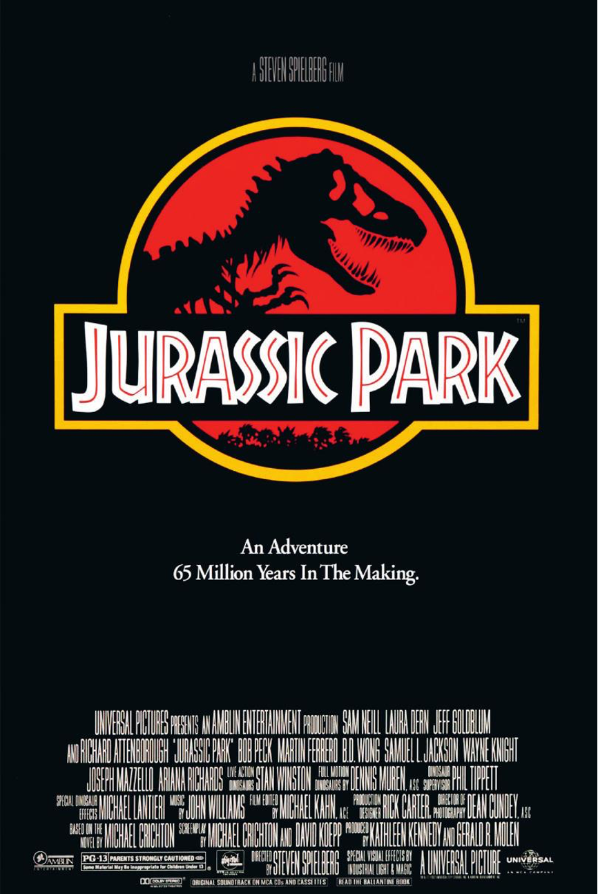 《侏罗纪公园》(1993)作为第一批充分挖掘CGI技术潜力的大片之一,海报的聪明之处在于拒绝透露任何信息。