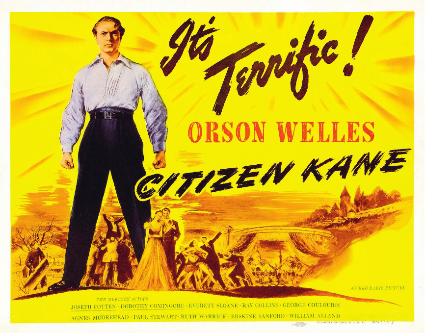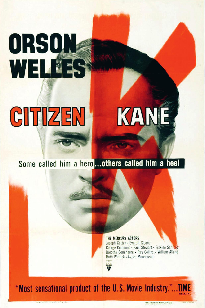 《公民凯恩》记录了查尔斯·福斯特·凯恩的早年生活,得势之后又堕落。这是一个关于权力和傲慢的故事。然而,电影制作背后的故事和故事本身一样引人注目,其核心是奥逊·威尔斯。在制作人统治好莱坞的时代,明星必须靠自己的努力才能出现在聚光灯下,而第一次当导演就把自己拍成主角,这成为所有宣传的焦点。在每张海报上都能看到奥逊·威尔斯的名字,这在当时几乎是无法想象的。自卓别林以来,还没有人能如此完全地支配一部作品。但是威尔斯花了数年的时间,在启斯东、埃森内、慕切和第一国家影片这几家公司中的影响力不断提升,创作出了一种特定的银幕形象,观众可以在任何海报上一眼就认出他来。威尔斯刚刚来到好莱坞,似乎对明星地位及随之而来的一切都充满期待。