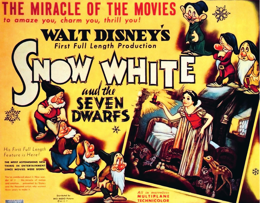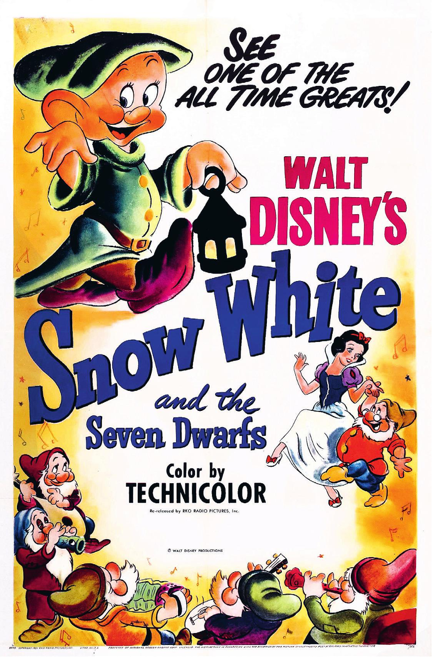 《白雪公主和七个小矮人》是第一部大规模发行的动画片。20世纪30年代末,观众习惯了观看各种形式的动画片。它们通常是一个主要故事的辅助短片,或者周六儿童节目的一部分。对于成年观众来说,花钱看一部完整长度的动画片是一种奇怪的做法。迪士尼在这部电影三年的制作周期内,完成的动画极少。此外,《白雪公主和七个小矮人》的制作还带来了严重的财政风险。原先的预算是25万美元,实际支出却是它的六倍之多。然而,“迪士尼的傻劲”却一夜成名,并且激励米高梅推出了奇幻片《绿野仙踪》(1939)。《白雪公主和七个小矮人》于1944年再次上映,在随后的50年里又上映了七次,将迪士尼公司打造成了好莱坞最主要的电影制片厂。