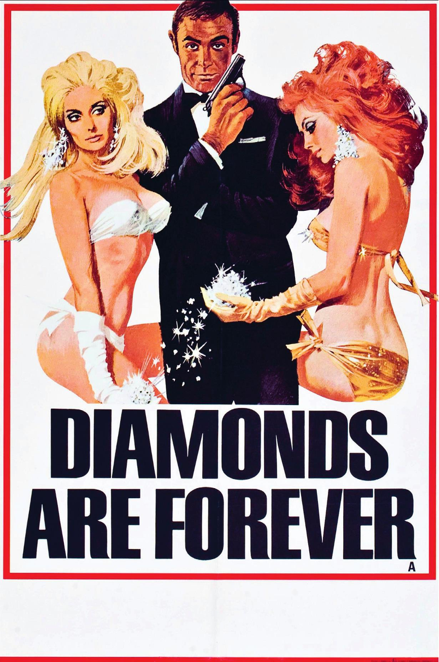《永远的钻石》(1971)康纳利的回归促使他的形象发生了转变,与邦德以往的海报设计相比,不再那么张狂。海报中只有一张图片,没有动作场景的叠加。