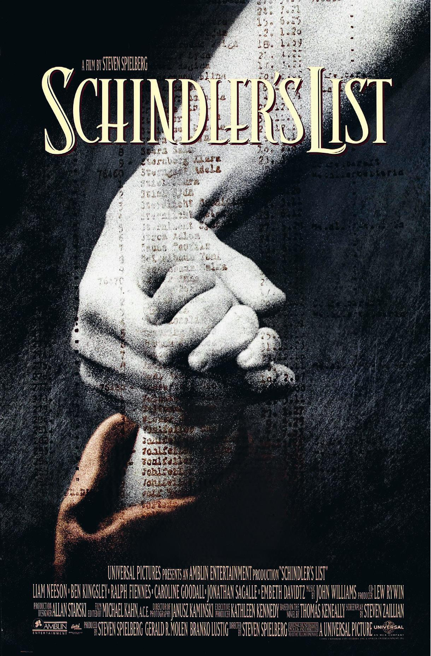 《辛德勒的名单》(1993)乔治亚·杨的设计被选中,斯皮尔伯格舍弃了索尔·巴斯更朴素的设计。这个简单的手势覆盖着死者的名字,暗示了大屠杀背景下残存的人性。
