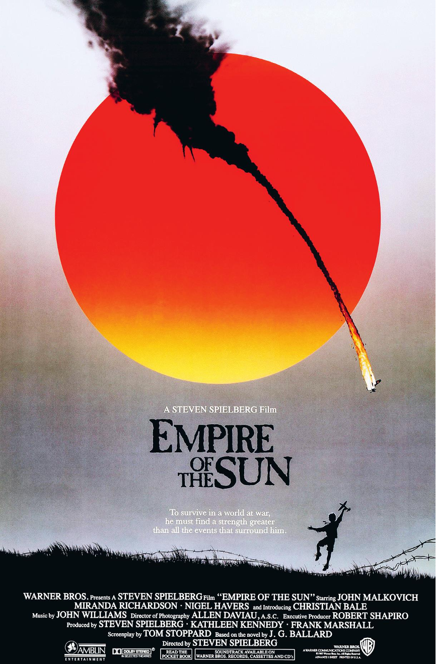 《太阳帝国》(1987):约翰·阿尔文将举着玩具飞机的男孩与真正的飞机坠毁放在一个画面里,暗示了斯皮尔伯格的电影改编接近巴拉德原著的成长小说。这是一部以童年视角呈现的战争片。