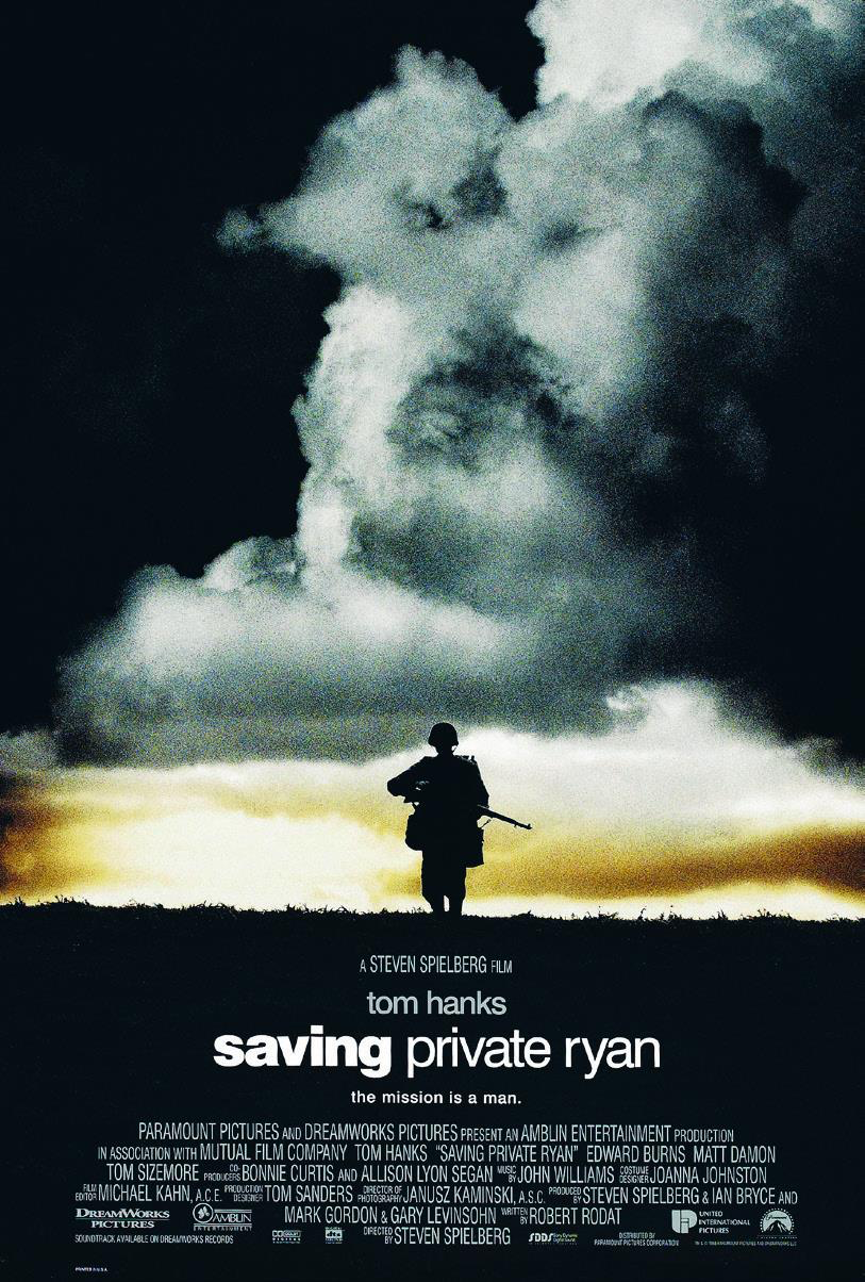 《拯救大兵瑞恩》:(1998)这可以说是斯皮尔伯格电影中最有效的剪影设计,将一名美国士兵塑造成了一个普通人。