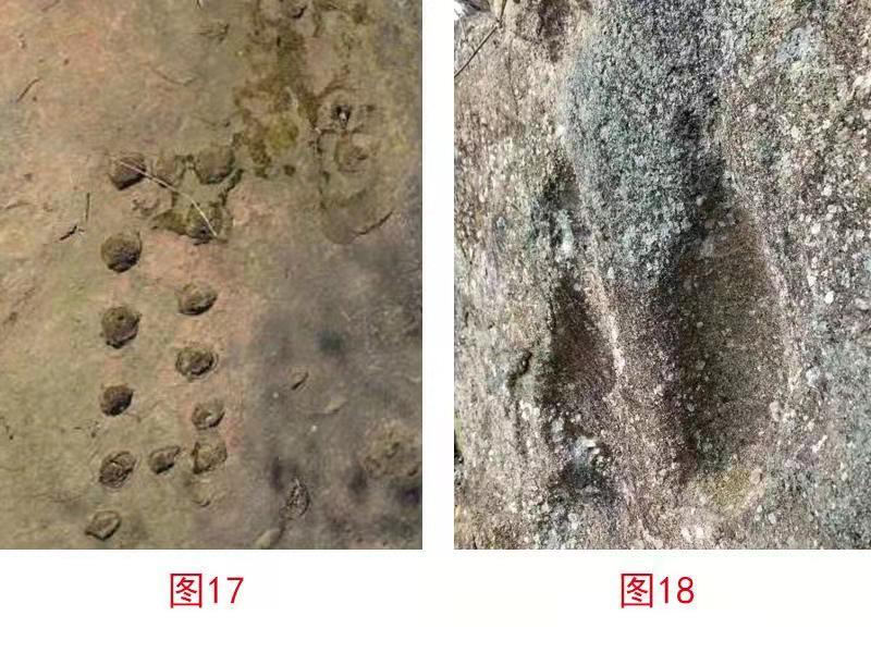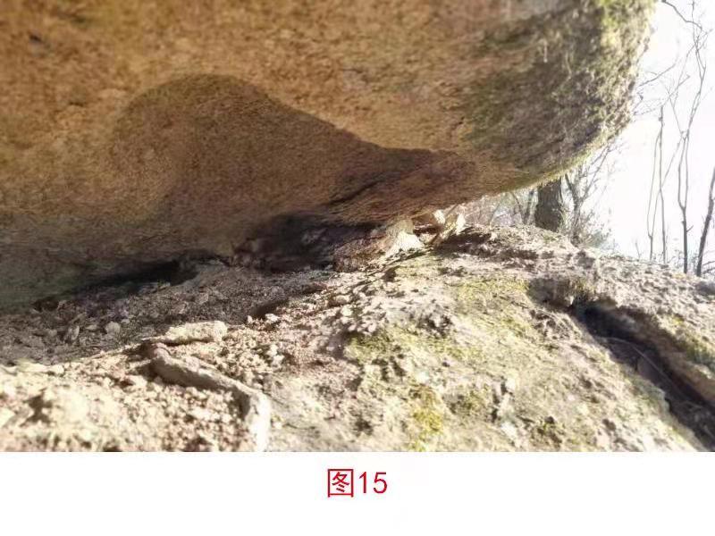 大家都知道,易经的核心是阴阳、五行、八卦。阴阳关系在凹穴岩画中有明确表示,例如在合肥棋盘山、金寨葛藤山、新郑具茨山都发现了岩石底部的凹穴岩画(见图15),穴口朝向地面,与岩石顶部穴口朝向天空的凹穴形成明显的天地阴阳关系。还有大部分凹穴都集中在岩石最上部的阳角上,阳的概念非常突出。