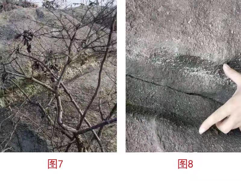 关于凹穴岩画与生殖崇拜的关联,我们在合肥棋盘山岩画、金寨葛藤山岩画中找到很多相关证据。古人认为,石块间的经脉是人身体上的脉络,这一点与合肥棋盘山发现的沿着石经制作的大量凹穴岩画吻合(见图7);《晋书.李特载记》记载,人是石穴中产生的,与凹穴岩画的生殖凹穴意义吻合;大禹神话中,大禹的妻子涂山氏变成石头后,大禹向石头索要儿子,于是石头裂开了一道缝,禹的儿子启从石缝中跳了出来。中国人耳熟能详的孙悟空也是由石头孕育,从石缝里降生。这两个神话故事与金寨县葛藤山发现的沿着石缝制作大量凹穴岩画吻合(见图8)。