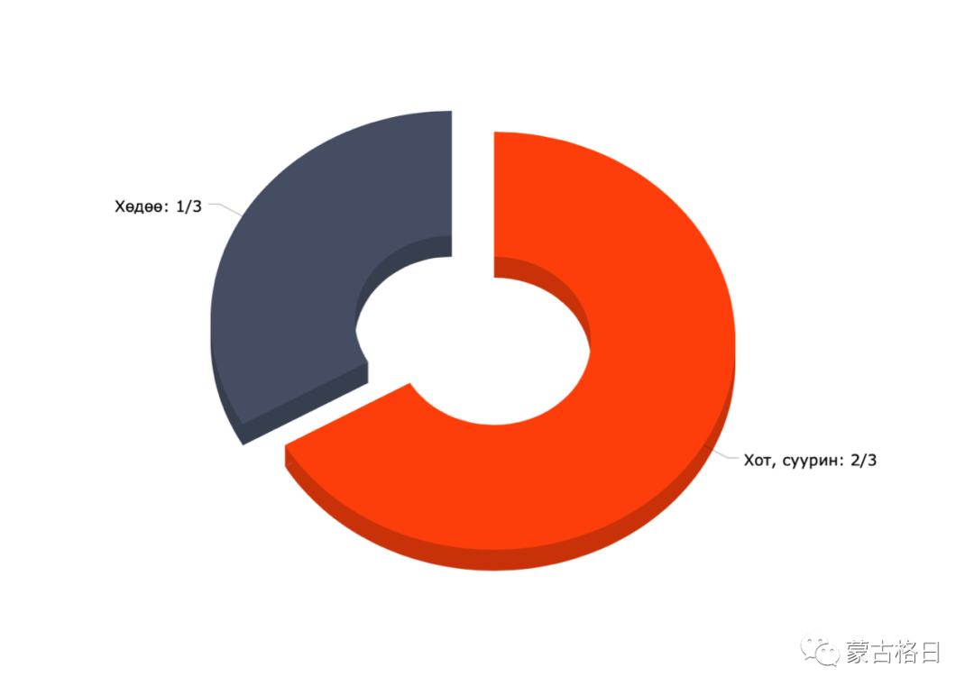 根据蒙古国家统计局统计的数据显示,约有三分之二的蒙古国女性在城市居住,三分之一的在农牧区生活。在最近的四年内,这一数据没有发生过太大的变化。