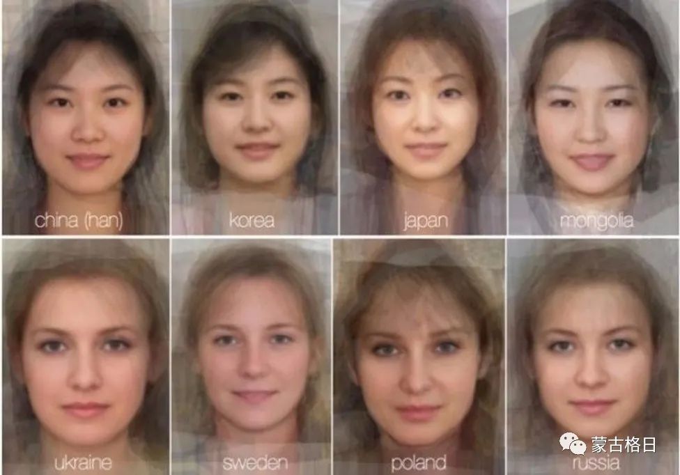 2013年,格拉斯哥大学的科学家们进行了一项有趣的研究。 他们使用现代化的设备,绘制出了全球部分国家普通民众们的长相和面孔。其中,在上图位于第一排右一的女性面孔,就是蒙古国女性的长相,是不是很具有代表性呢?因为这是根据100位蒙古国女性的长相,综合后绘制而成的。