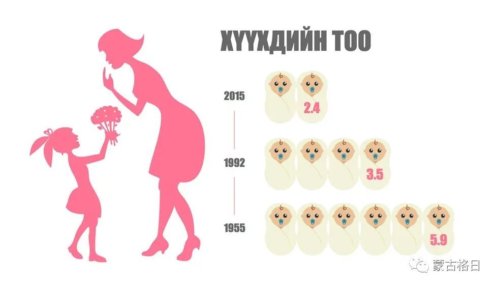 从最近五年以来的统计数据看,蒙古国女性平均生育3个孩子。