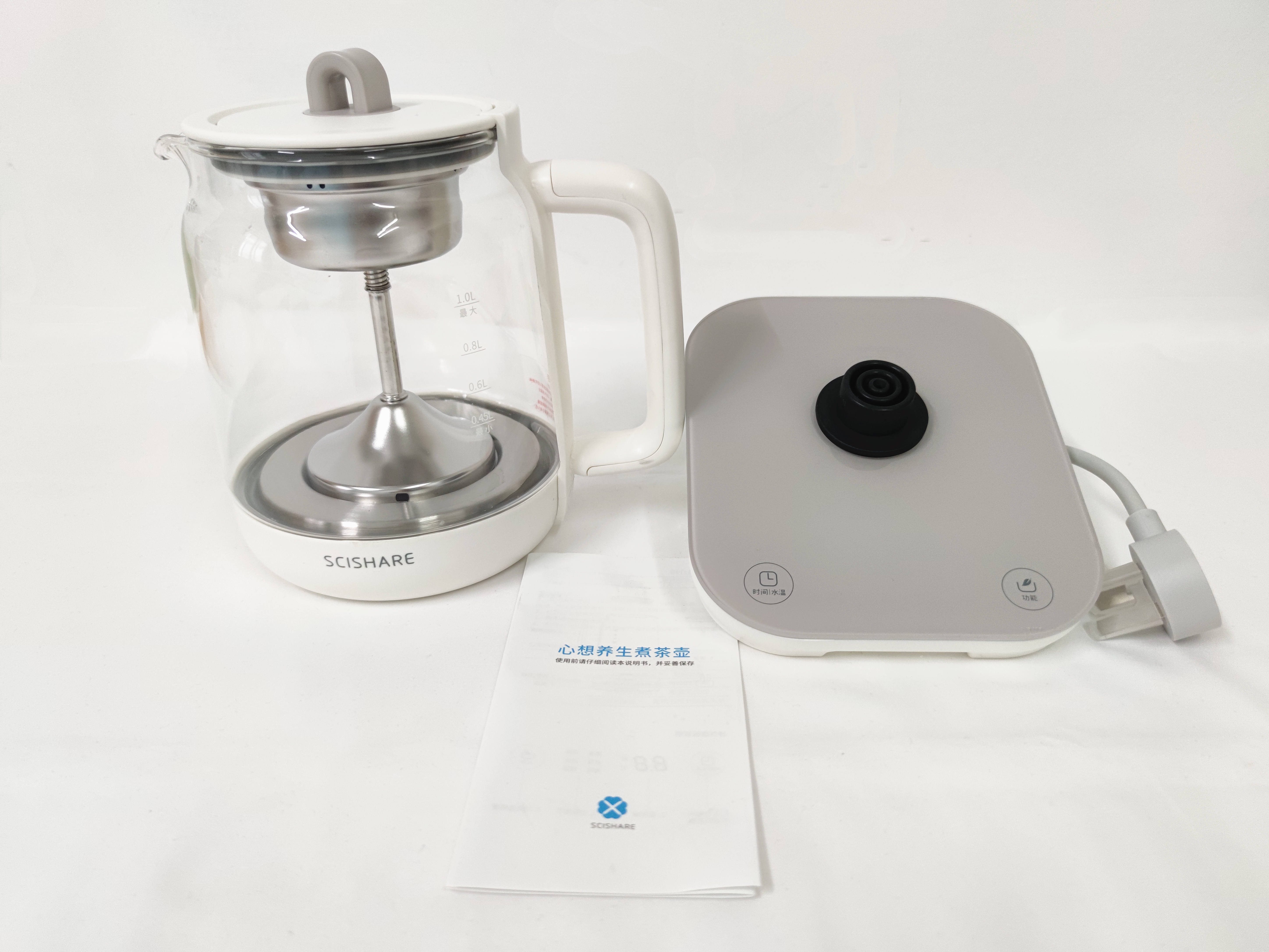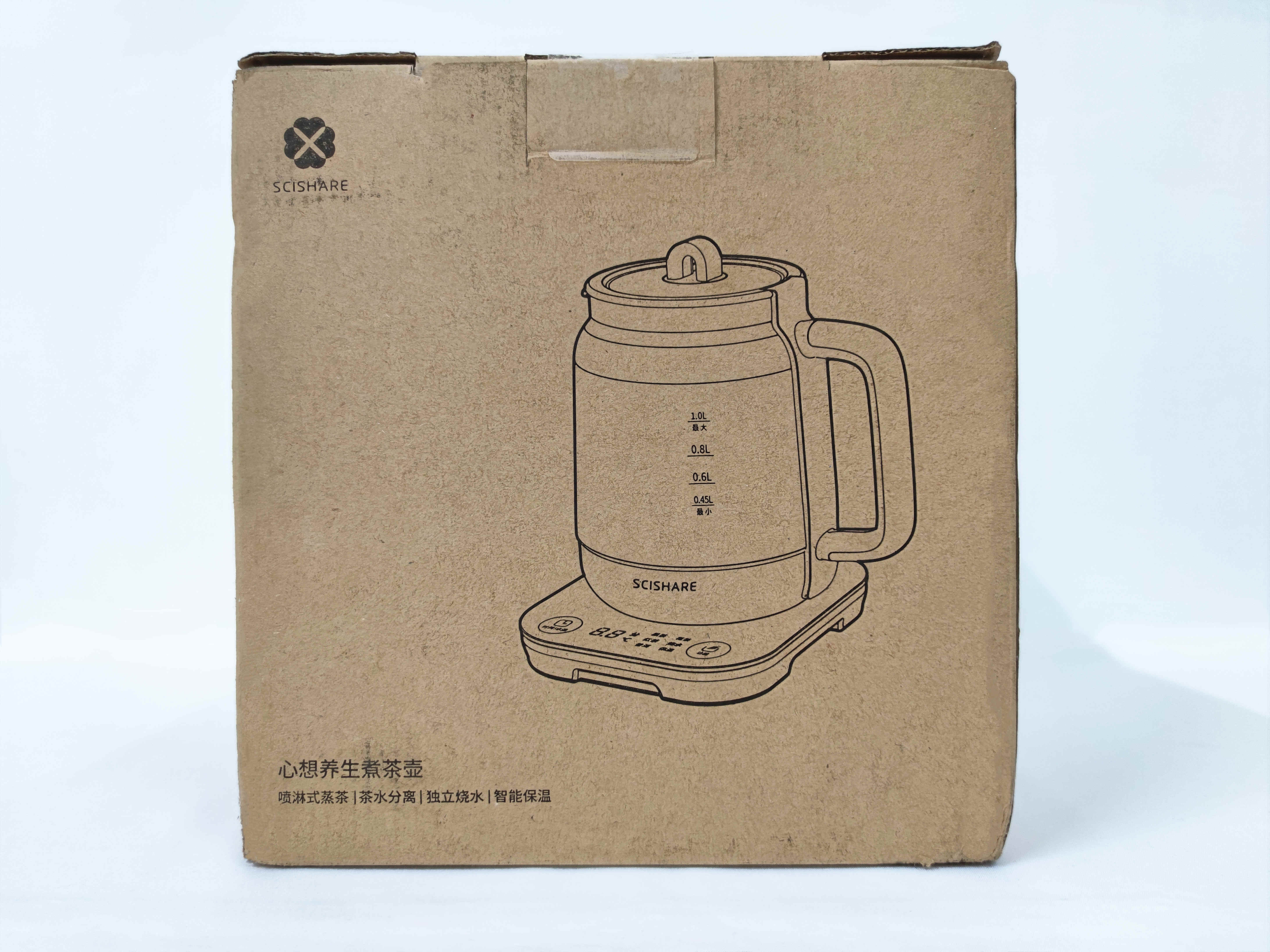 包装盒是木色的简约风格,正面的渲染图就是心想养生煮茶壶的基本轮廓。将包装盒打开之后,可以发现除了煮茶壶之外,还有煮茶器和说明书。这不是一个普通的煮茶壶,这是爱茶人士的必备之物。