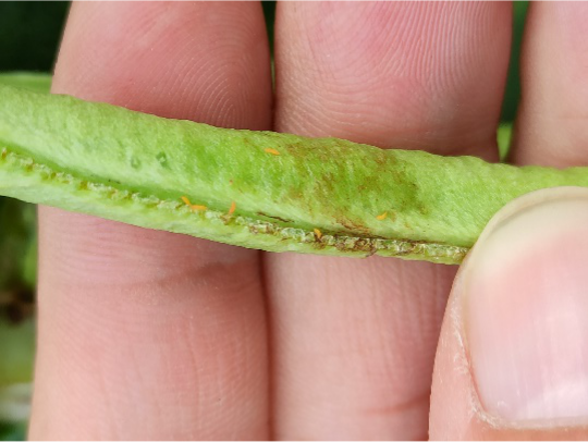 豆角黄蓟马主要喜欢在豆角缝隙或豆角背阴面活动,花蓟马主要在花及周边活动,因此在喷药的时候,需要针对花周边,缝隙处以及豆角背阴面用药。