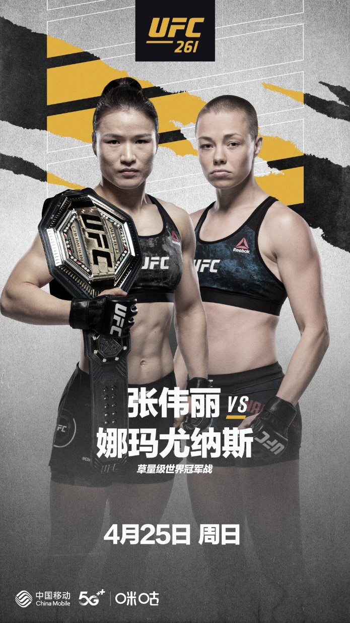 以目前张伟丽在中国的名气来说,这场比赛将获得极大的关注,届时大家可以通过咪咕视频观看UFC261期的比赛,而最新签约的傲日其楞、梁娜将有可能和张伟丽并肩作战,让我们一起在咪咕为中国军团助威呐喊!