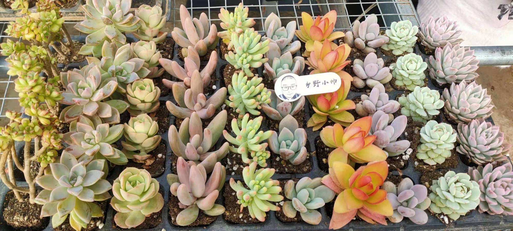 接下来我给大家展示一组非常美丽的套餐,适合新手练手,这是一共50棵肉肉,10品种都是偏紫色,来依次给大家介绍一下左起是晚霞之舞,桃美人,火祭,高贵,红手指,丘比特,蓝色惊喜,晚霞,紫心,桃蛋,这些品种颜色艳丽,并且都比较好养。喜欢肉肉的朋友可以在评论区留言评论。