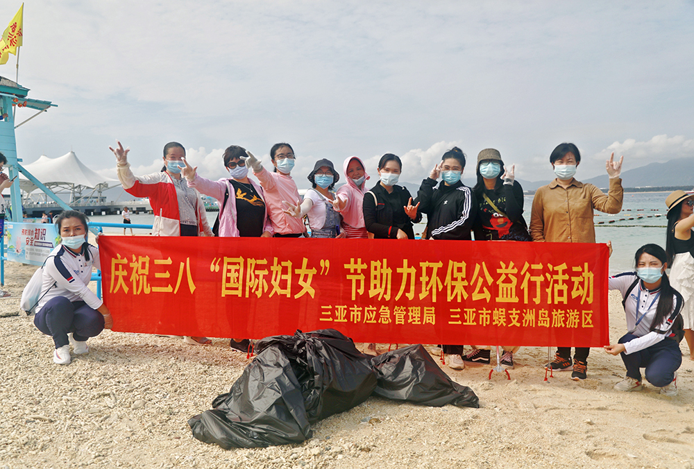 3月8日,国际妇女节来临之际,三亚市应急管理局“女神团”一行在蜈支洲岛海滨浴场区域,以实际行动清洁海滩垃圾,呼吁广大市民和游客关注生态环境,共同守护美丽的海岸线。