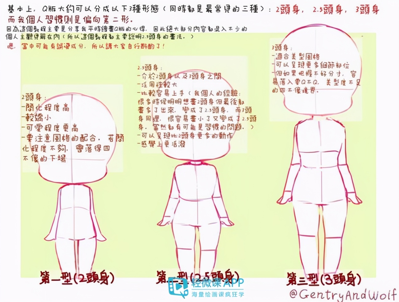 怎么画Q版人物画法教程一个成年人的身体比例大致为七个半头身,而Q版画通常会以两个或者三个头为主。呈现了一张类似于孩童一般的形象。但Q版不是说将头部保留将身体缩小为一个头长的形象。这样既不能表达出Q版的可爱反而会让人物看起来特别奇怪。而Q版是将整体形象画得比较圆润。每决定画一张Q版的人物的时候都要先确定你这张人物的具体动态,一张两头身的Q版形象,只能做一些比较简单的肢体动作,但如果有些动作幅度较大一些的,可能就需要用三头甚至五头身来表示。如: