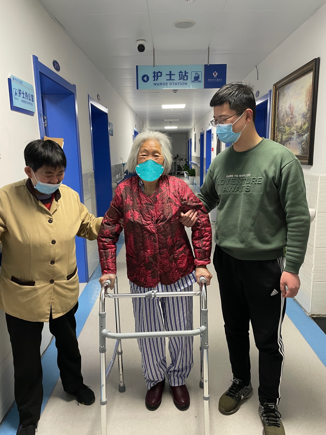 "三分治疗,七分护理",为了预防关节脱位、感染、压疮、坠积性肺炎、深静脉血栓等并发症,术后外二科医护人员积极指导陈奶奶进行踝泵运动、正确摆放体位,帮助翻身拍背,促进早期康复。在手术后第三天,陈奶奶就能借助助行器下床活动,一周后顺利出院。