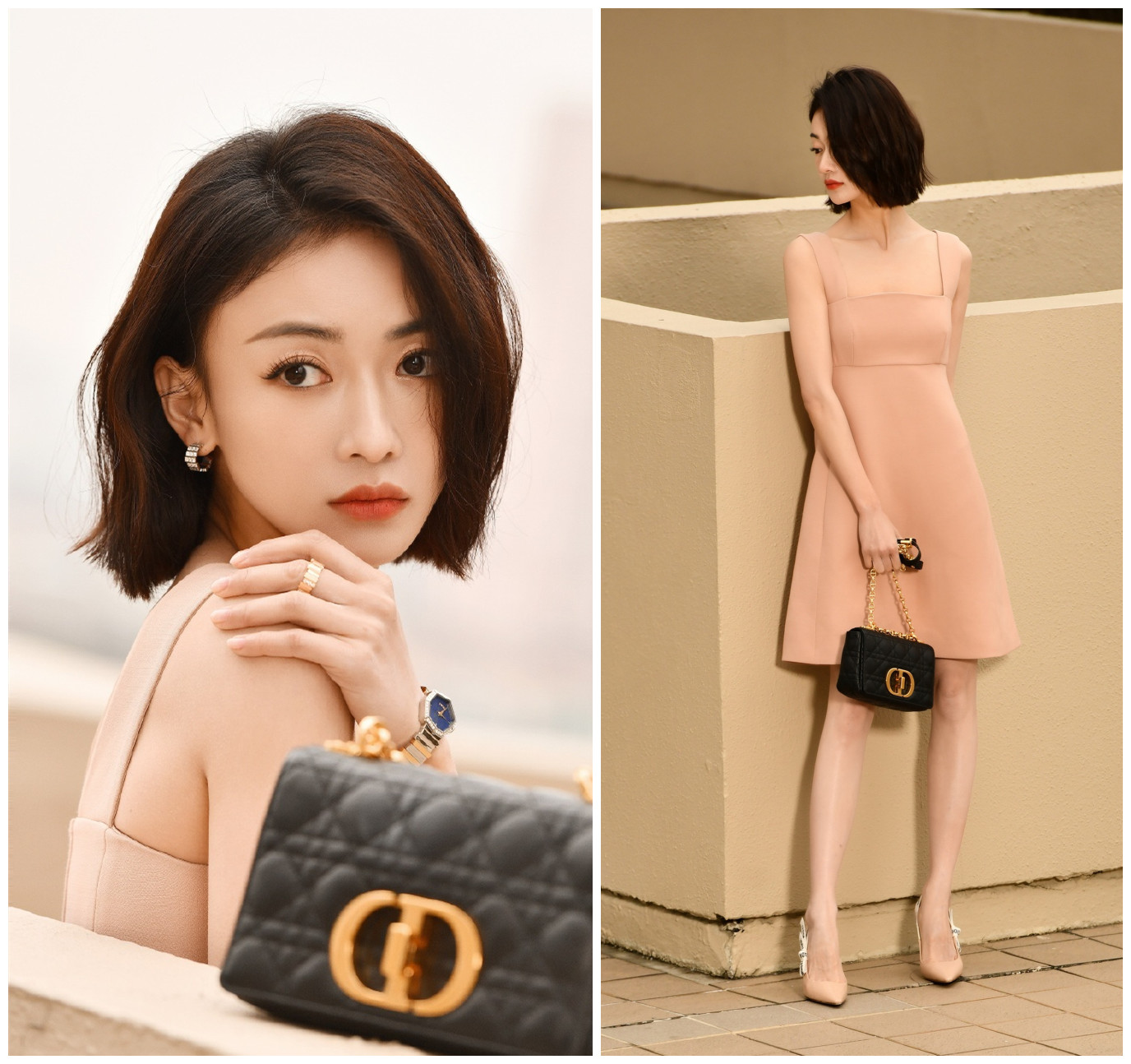 比如日前的品牌活动,吴谨言身穿一件dior的裸粉色吊带短裙,搭配同色系的尖头小高跟亮相,裙子款式活泼颜色优雅,配饰妆发搭配恰到好处,整个造型轻盈精致不失高级感。看完这个造型,网友夸赞短发好适合吴谨言。