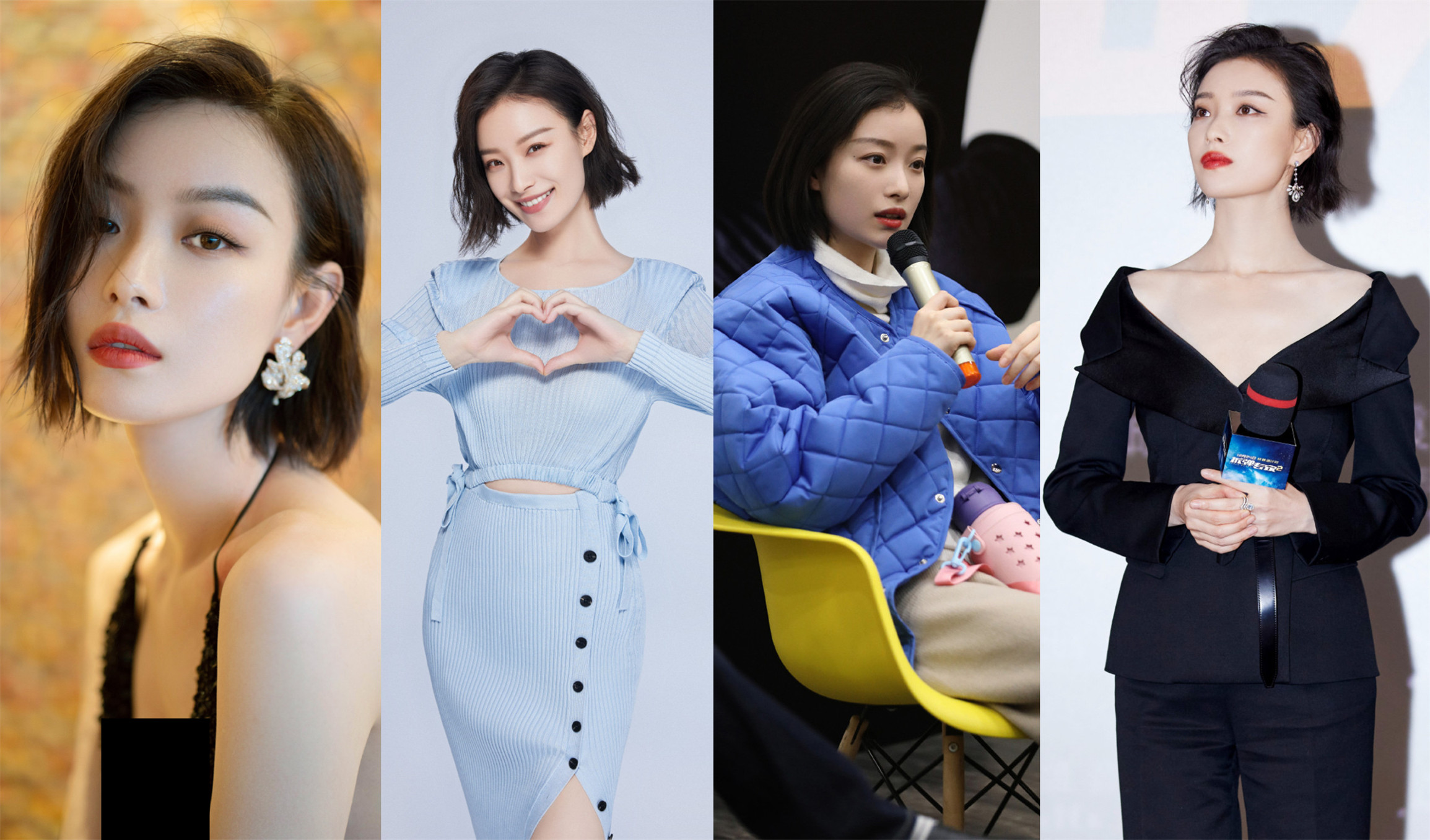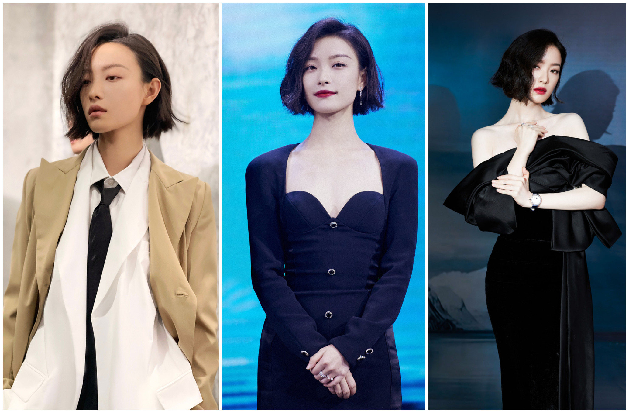 最近不少明星都剪了这种比lob头短,比传统的波波头长一点的bob短发,在吴谨言之前,倪妮因为新剧也剪了同款发型。因为不是特别短的波波头,所以造型空间也不那么受限,可飒爽也可以风情性感,是不一样的美。
