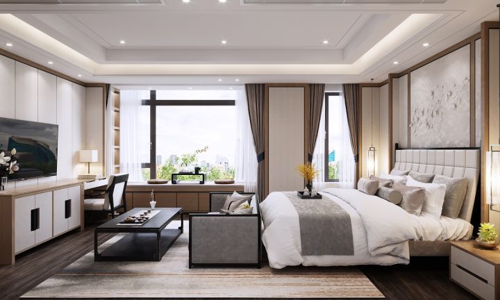 室内的墙壁、地板、天花板、家具乃至灯具,都以造型简洁、质感纯净、工艺精准为特点。