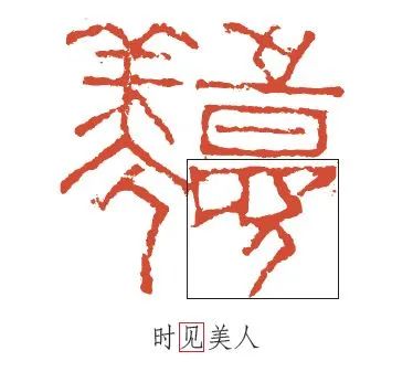 从释文中我们知道该篆刻家将“见”字刻作“