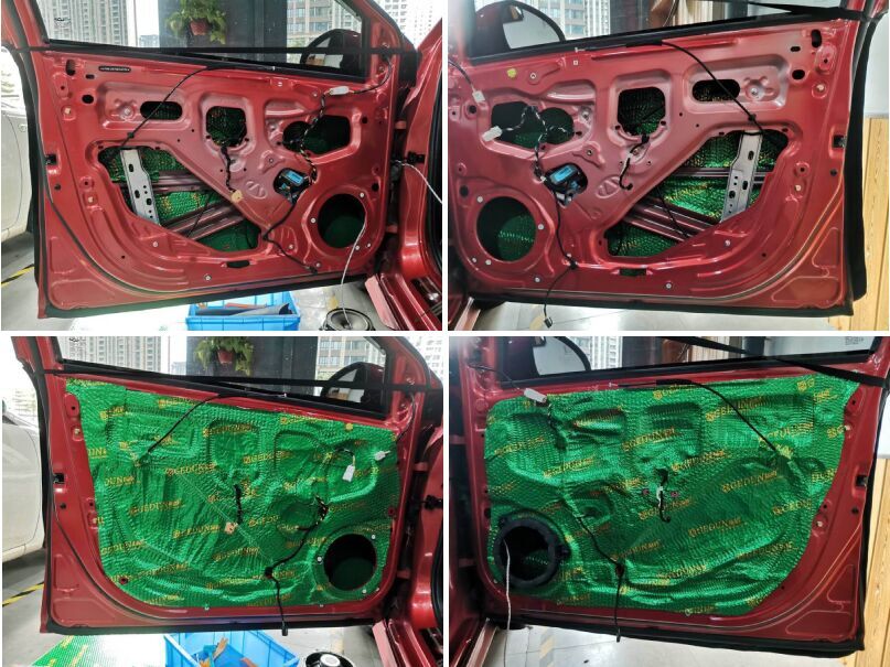 在改音响之前,隔音是必不可少的,车门做隔音处理,不仅能减少车门共振,还能将车门密封起来,为声场喇叭的工作提供一个良好的工作环境。