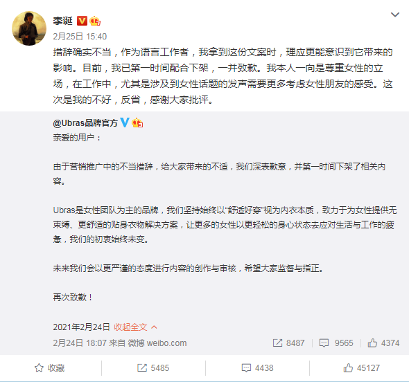 李诞因为带货Ubras时言论不当被猛烈抨击而被迫和品牌方一起道歉,但他并不是第一个踩雷的人。