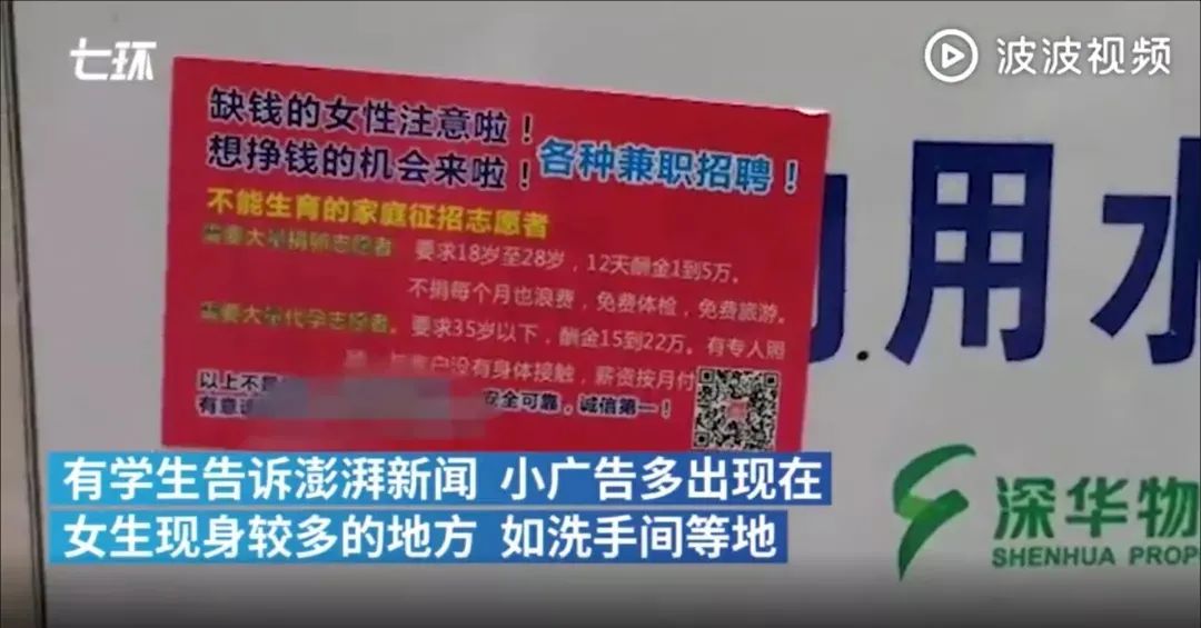 在明的地方,许多女性受到偏见与差别对待,但在暗的地方,有些女性正受到身体健康的摧残。在高校、医院的卫生间,有一类披着公益外衣的小广告,正在摧残着女性的身体,那就是“捐卵”广告。