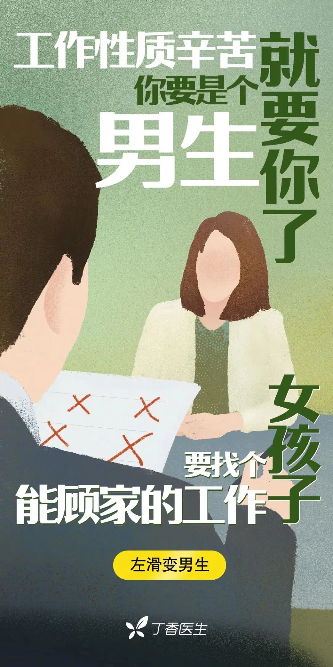 在推出的海报中,丁香医生列举了男女性在上学、就业、开车、养育、家庭、安全6个方面中的差别待遇,如传统观念认为女生数理化不如男生、女司机比男司机开车更不安全、工作中女性不如男性能吃苦等。这些在现实生活中经常上演的片段,无疑能引起大多数女性的情绪共鸣。“想反驳又不知道如何反驳”,这大概是众多女性的心声。