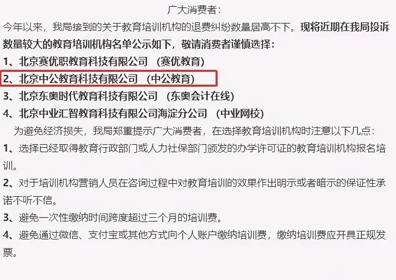 此前,中公教育还被市场监管机构点名批评: