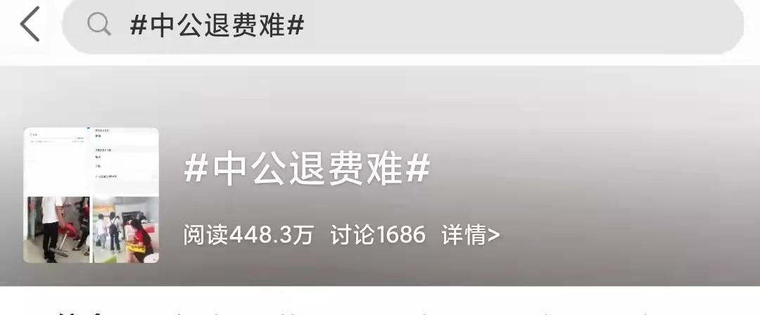 微博话题#中公退费难#讨论也已经积累了448.3万的阅读与1686次讨论。