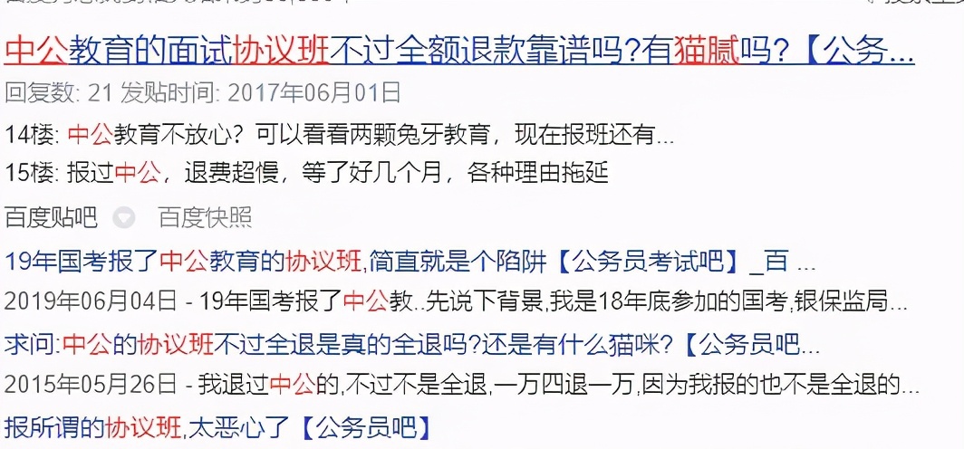 百度贴吧,更成了中公议班退款问题的重灾区。