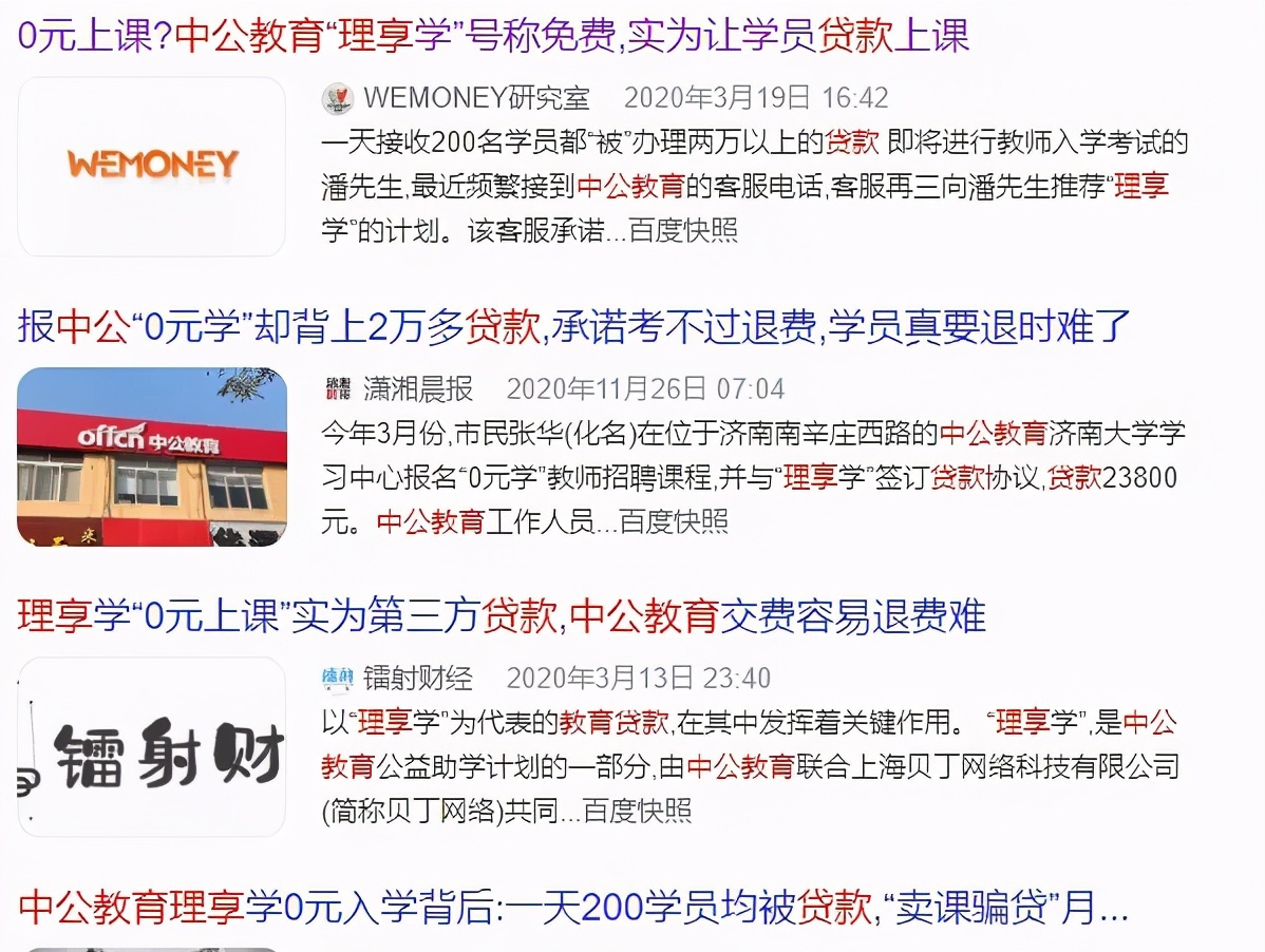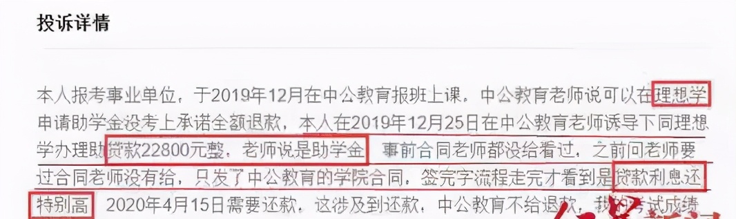 当时,中公教育以“0元入学”、“助学金”、“公益助学计划”、“借款期内免利息”为幌子,引诱刚毕业的穷学生通过扫码,申请商业贷款,让第三方贷款公司提前垫付学费,还不给任何纸制凭证。