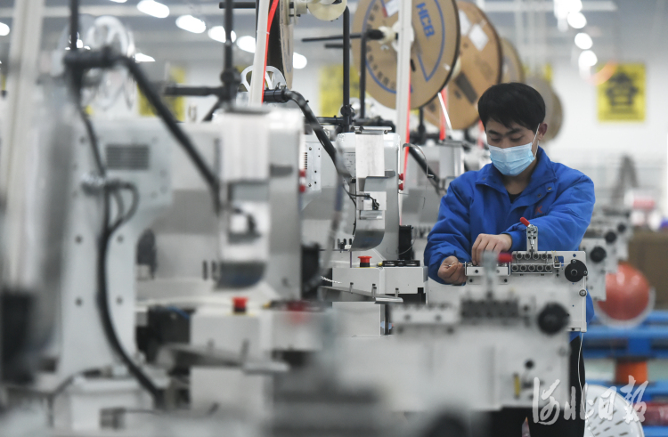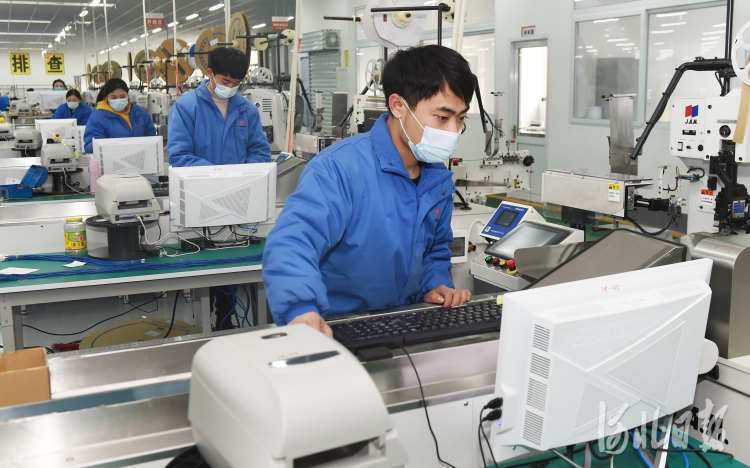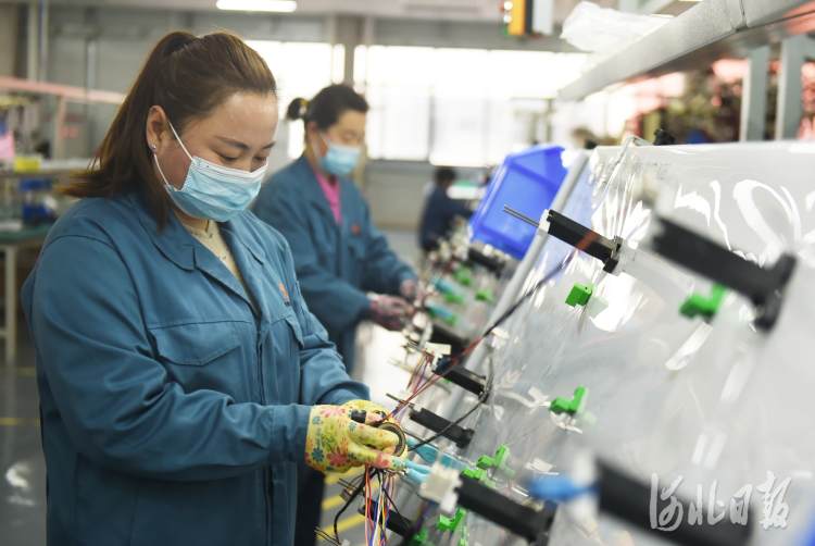 2021年3月10日,河北省曲周县得润电子有限公司的员工在生产线上作业。该县制定科技创新行动计划,围绕技术、资金、人才、平台、项目,选派科技特派员进入企业落实扶持政策,建立动态沟通机制,提高企业科技创新能力,促进县域经济高质量发展。河北日报记者史晟全摄影报道