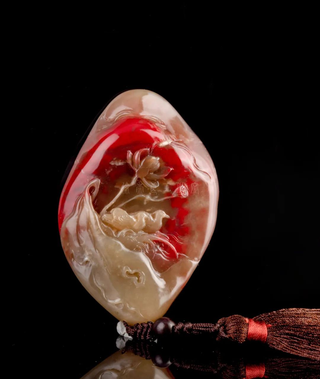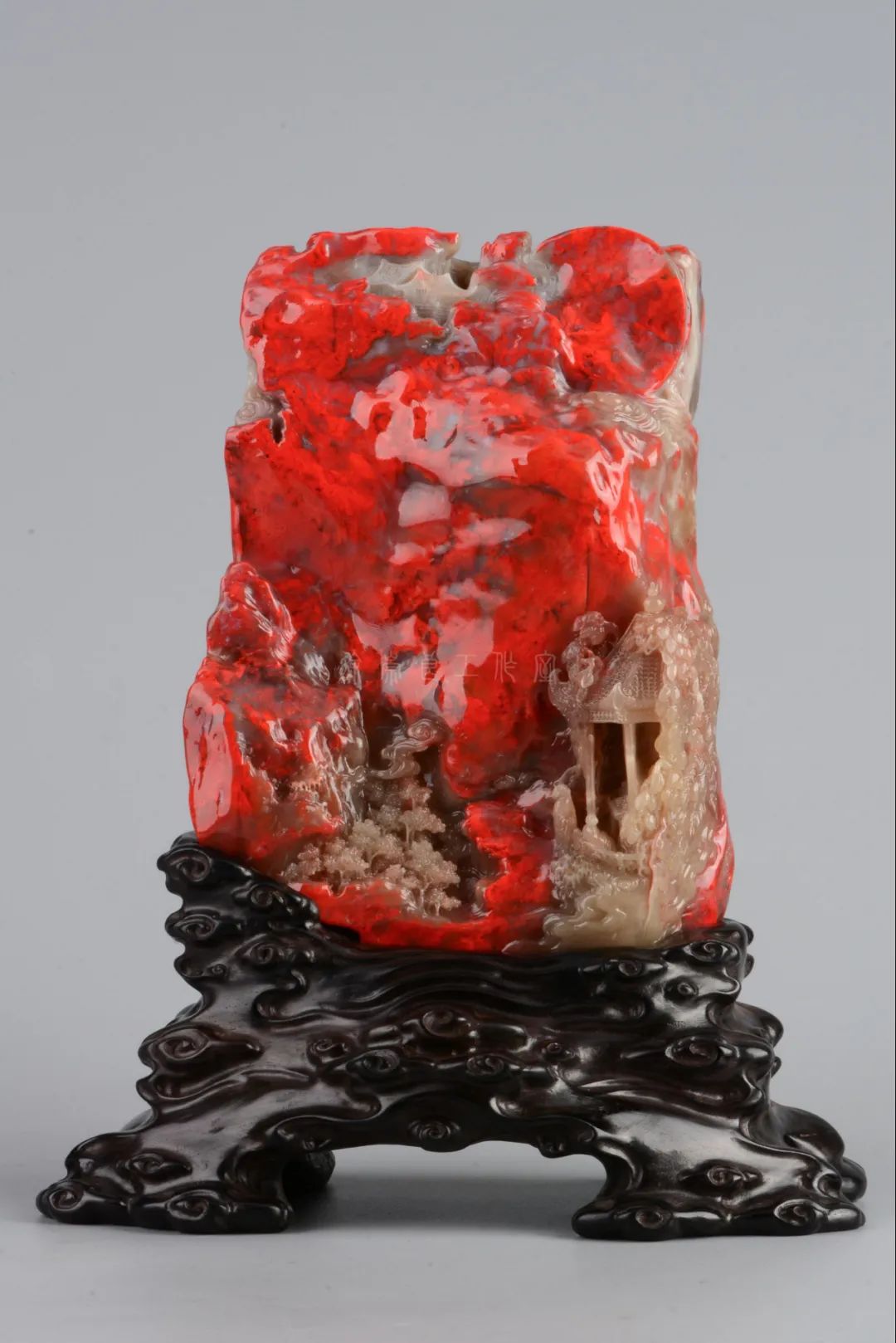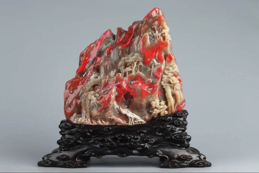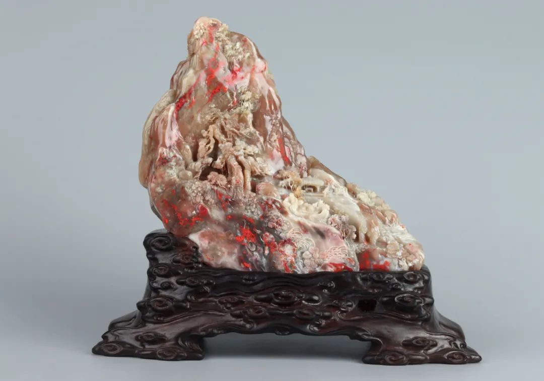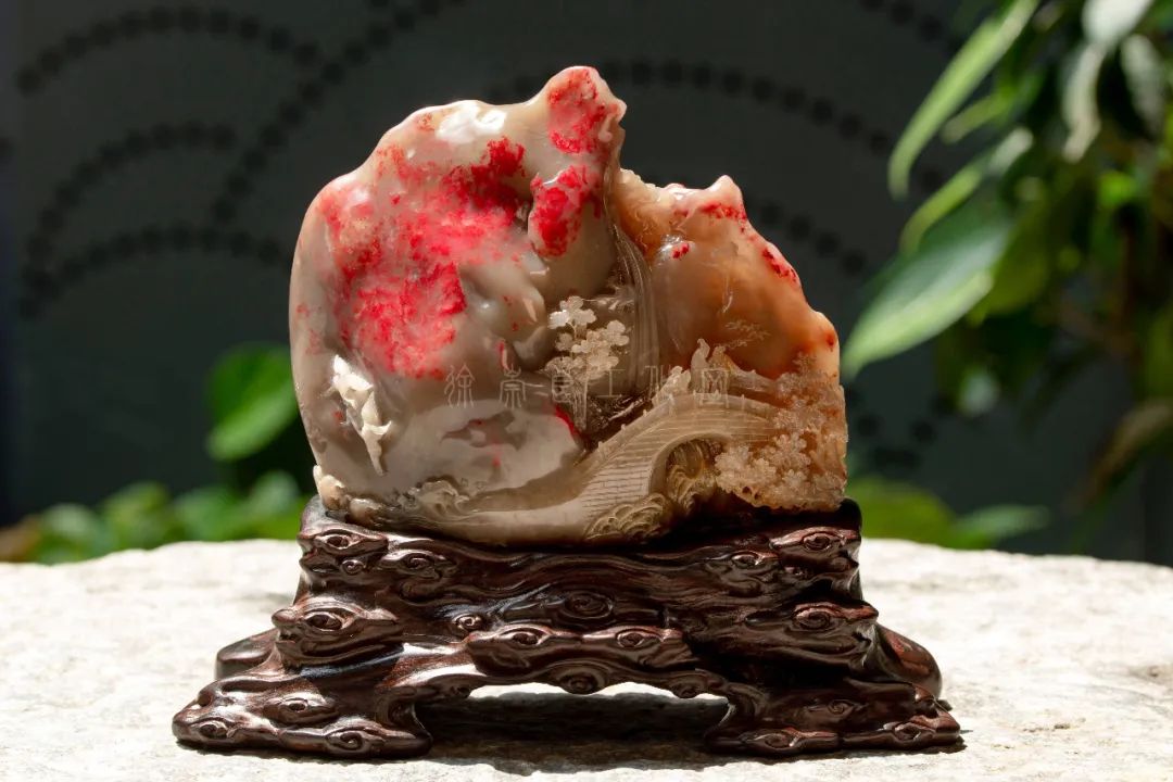 巴林石色泽温润,具玉石、宝石光泽和灵气。巴林水草冻石有黑水草、红水草之分,其实红水草就是水草状的鸡血石,好似海底的红珊瑚,美艳绝伦。