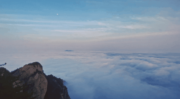 老君山最高峰海拔2217米,处于南北分界线的秦岭,天气变化快,云海形成是需要时间的,风速小,在气温升高前,风把云吹散的概率就会小很多。