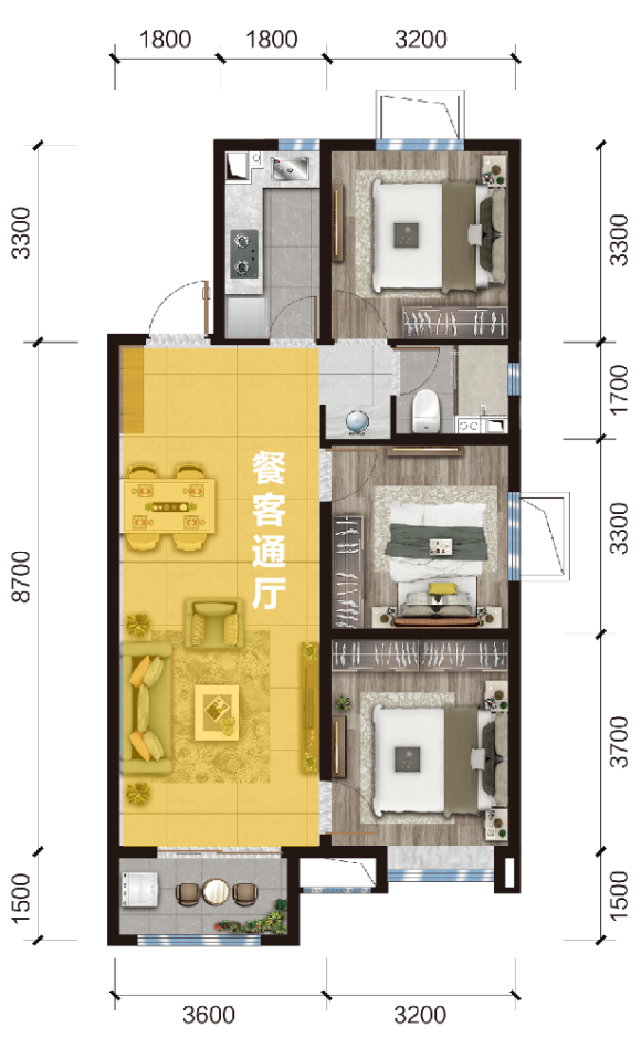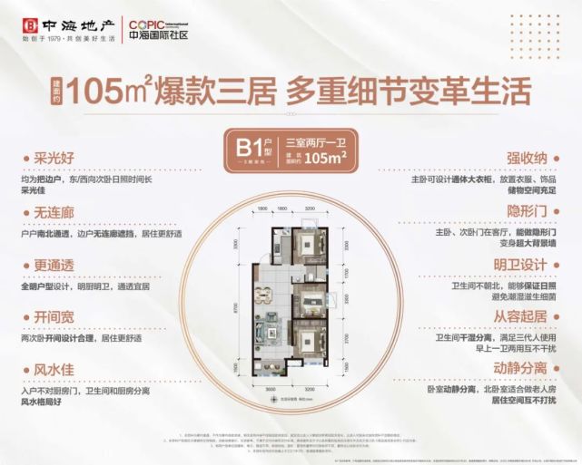 “大”不单纯指物理属性,更多的是体现在空间功能的扩展上。中海国际社区以“实用PLUS”的思维考量生活,满足城市大部分家庭“既要”,“又要”的要求,呈现更“圆满”的生活体验,突破居住想象的极致。在少数能全方位满足城市人居全龄段生活需求的热销户型产品中,约105㎡的明星三居当属其中!