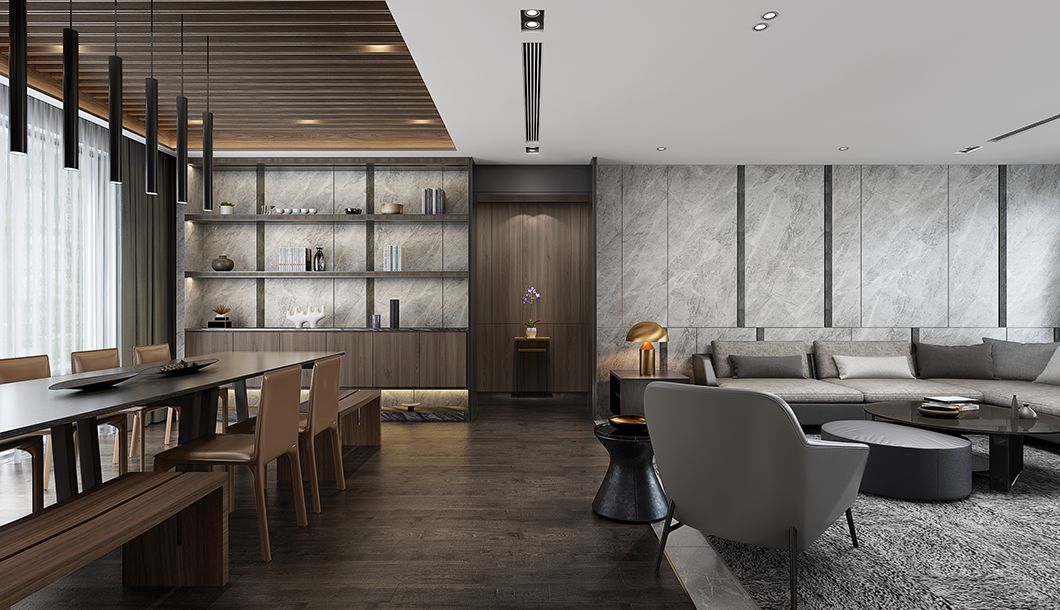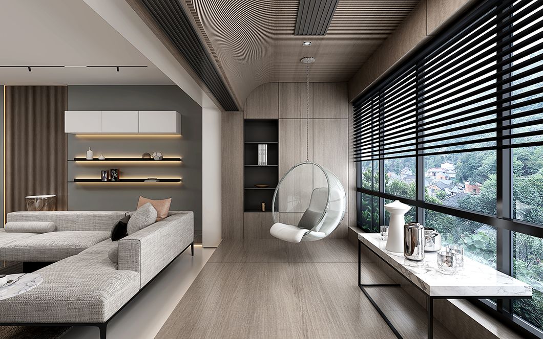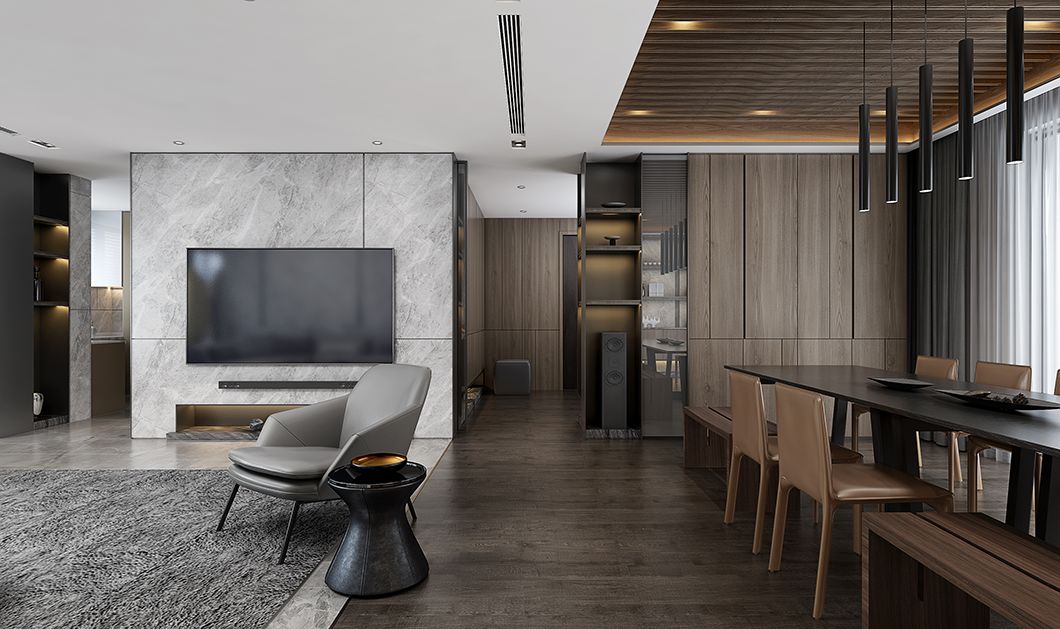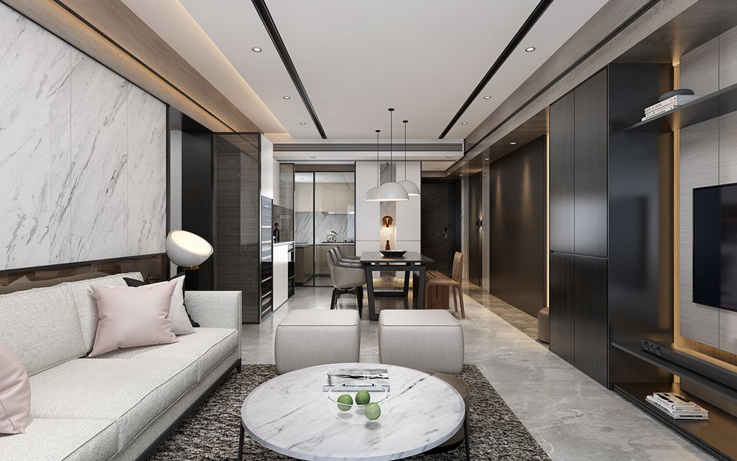 现代简约风格在设计上就要简单时尚看上去简洁、大气,现代风格的特色是将元素、色彩、照明、材料等材料运用多样化,经条化,注重空间的布局与使用功能。