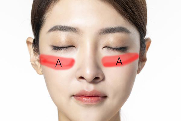 用散刷蘸取高光粉,与眼睑下方,从上到下轻轻画出一道弧线。有黑眼圈的小姐姐要注意了,用这个方式涂抹高光,可以提亮眼睑下方的肌肤,让双眼更加闪耀有神。