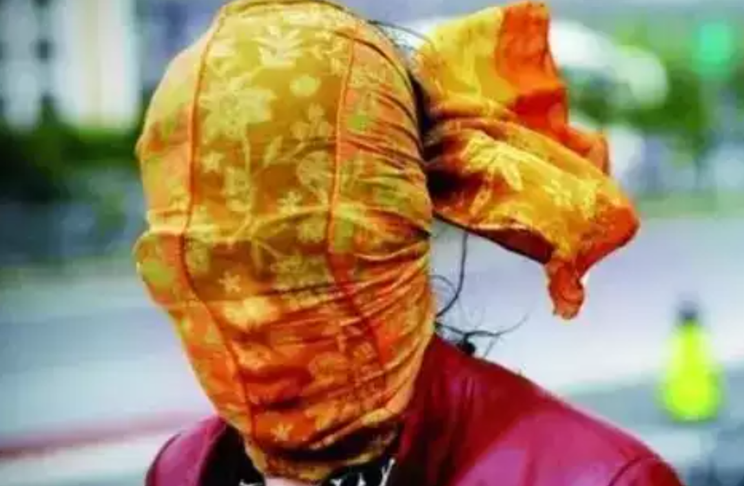 实在没纱巾的话,塑料袋扣个洞也是能顶一顶的。