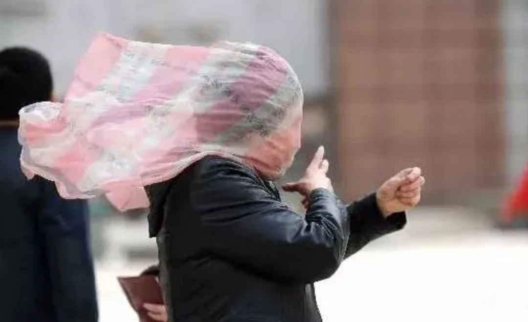只要一刮风,天津的路面上就会自然形成一场超现实艺术博览会,参展的大妈们会随机出现在各个角落。