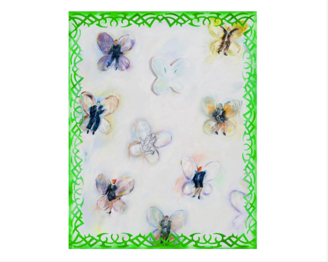所以这次我想介绍9位中外艺术家,其中闫欣悦的画,主题来源于她对于都市生活的想象与再现。她的画里都是我们日常能见到的人、事、物,比如说西装笔挺的上班族啊、破败的摩托车呀,还有游荡于街道的背影,多像我们自己啊。