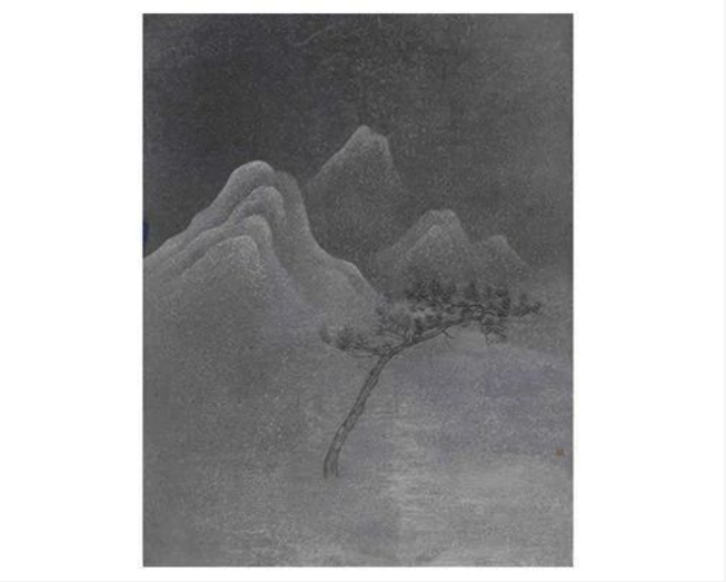 他的作品没有任何过度的修饰,也不迎合观众,画面只有一棵松或一棵杉,剩下的就是不可名状的黑暗。他用墨的肌理表达出来的层次感是非常有气韵的。